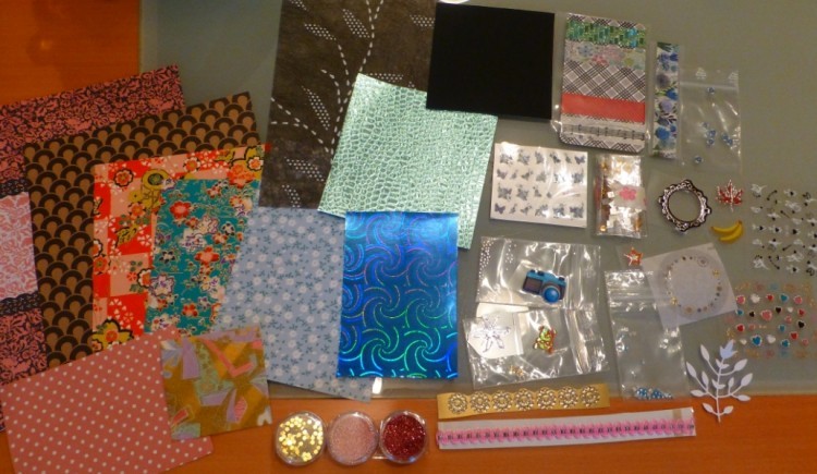Der ganze Inhalt hat mich erstmal total überwältigt… Ideen hatte ich spontan noch keine, aber am besten gefallen mir das blau glänzende Papier mit den Spiralen und das hellblau glänzende Schuppenpapier :D