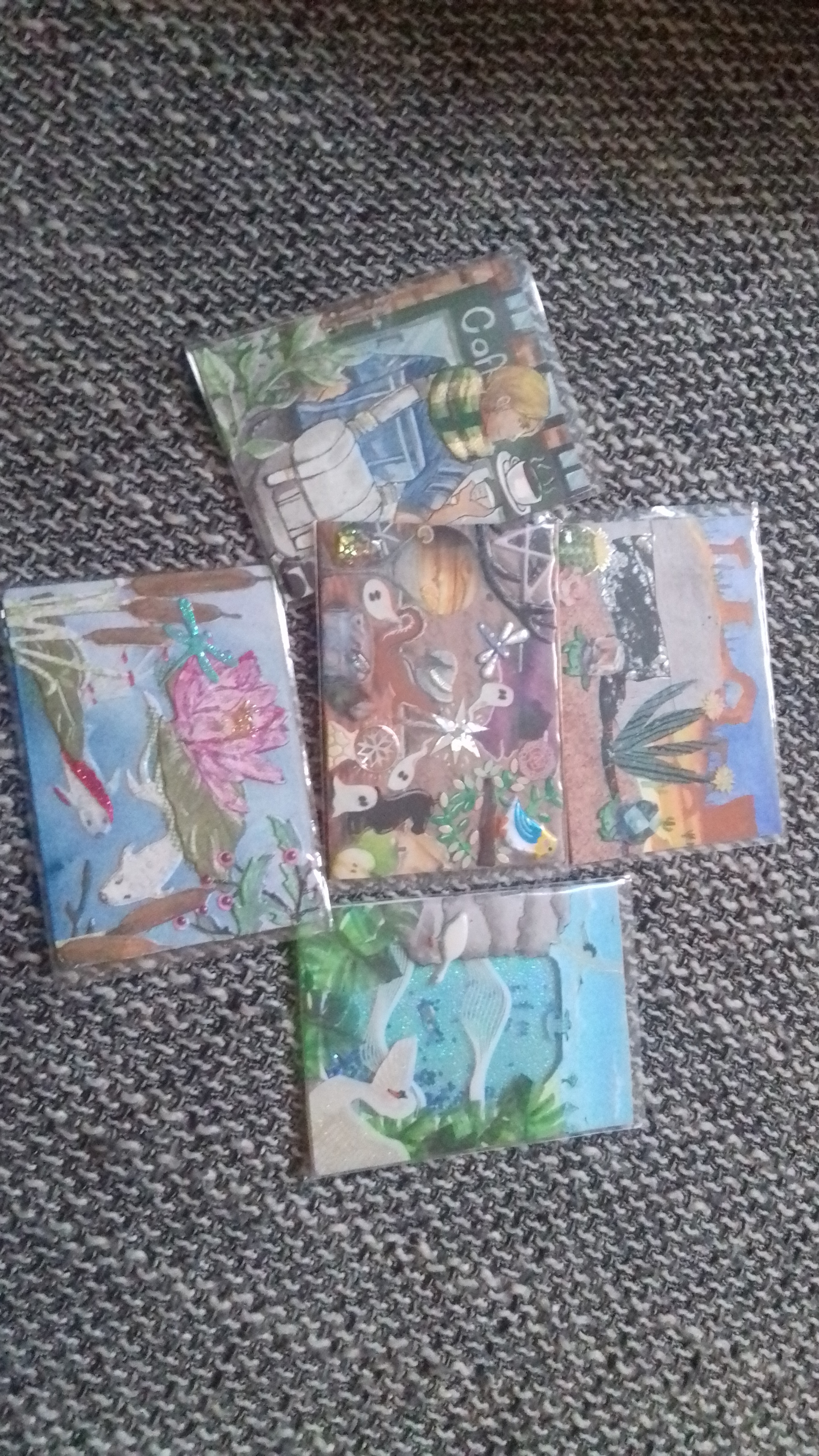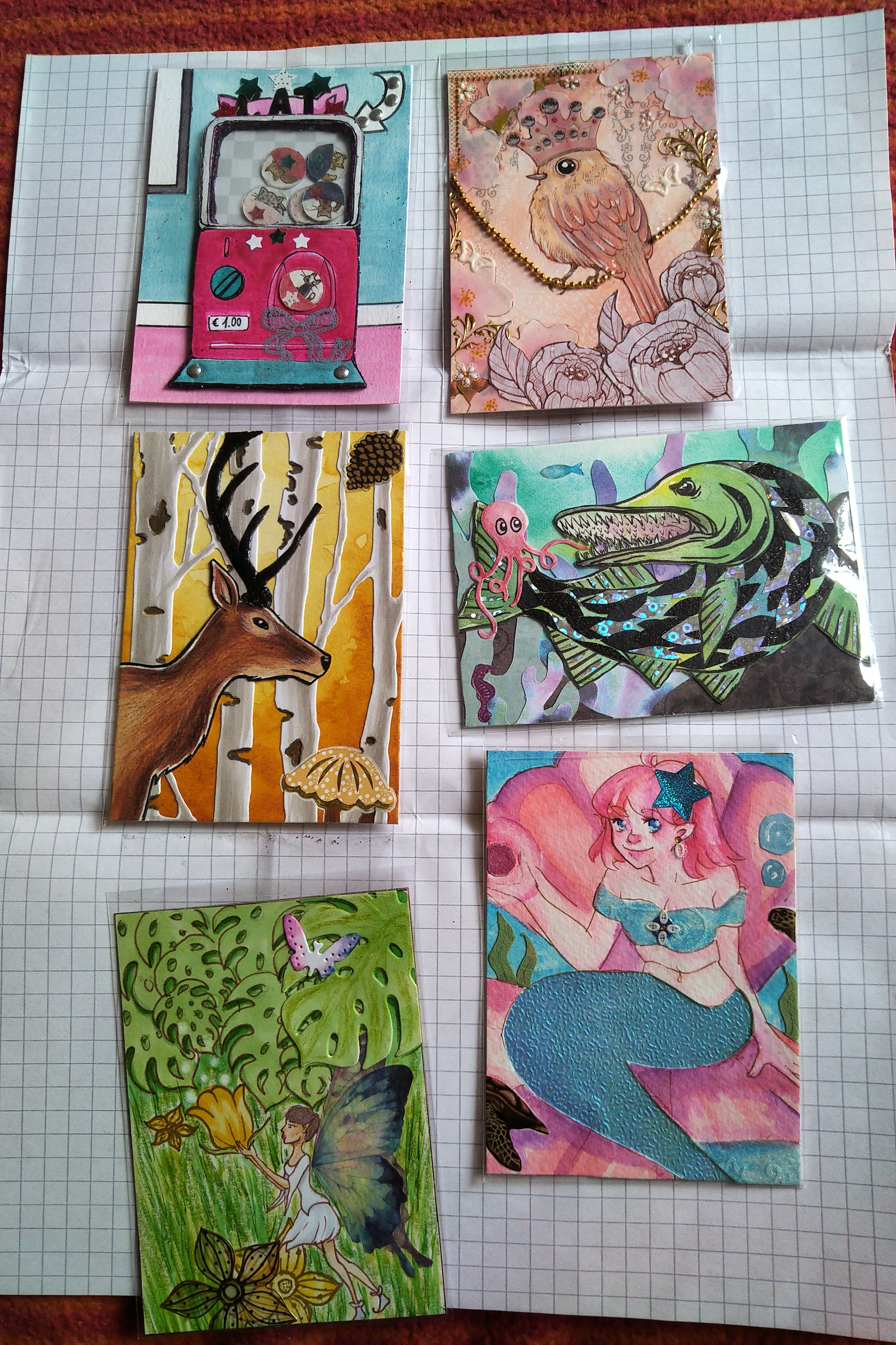 Ihr lieben - die Ersatzkarten sind endlich fertig abfotografiert und eingereicht. Es sind letztendlich sogar vier geworden, obwohl nur drei benötigt werden - aber das macht mir die Sache leichter, weil es die Wahrscheinlichkeit erhöht, dass die Karten auch jemandem gefallen.