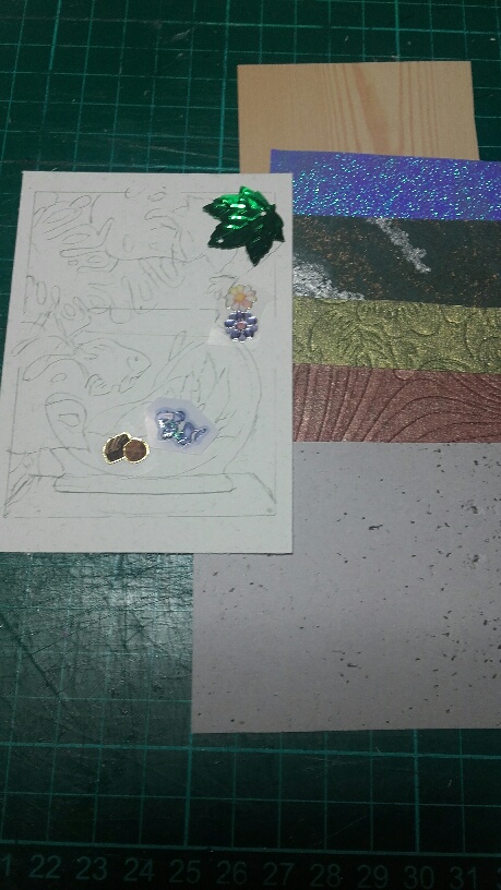 es ist eine Transferfolie für Nägel ,die für die Kartengestaltung mit der Rückseite auf eine klebende Fläche (leicht angetrockneter Flüssigkleber,oder doppelseitiges Klebeband , Klebefolie )