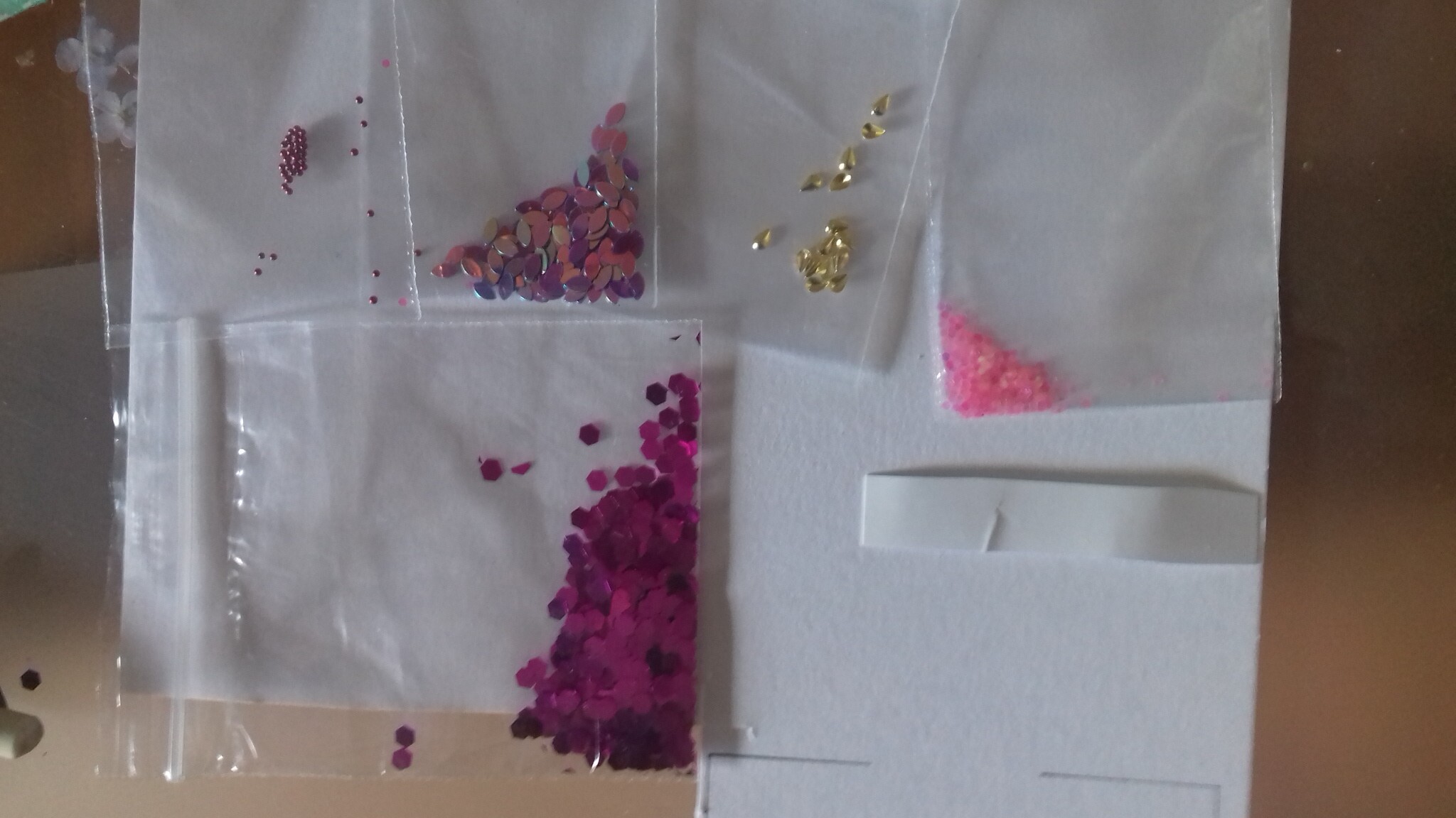 Ich hab da diesen Schmuckaufkleber wo so Glitzersteine eingelassen sind (bin grad nicht daheim, daher kein foto möglich) der schon von mir kam und der einfach viel zu fett ist, als das ich den verbastelt bekomme.