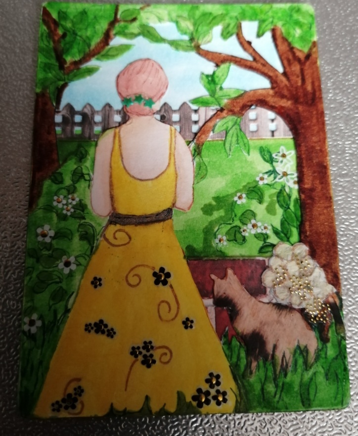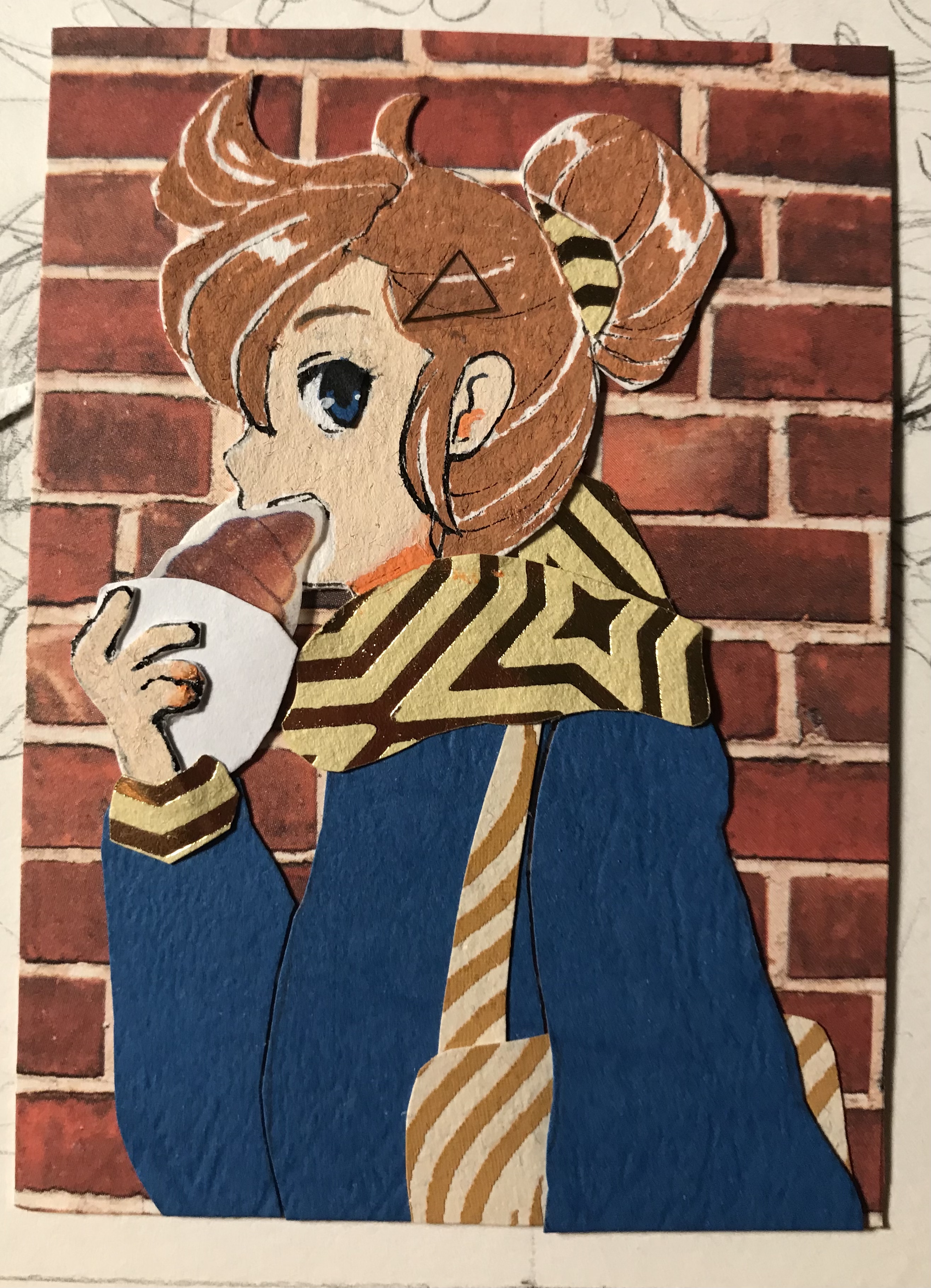@Chocosart Ja genau, du hast das Prinzip verstanden, die Karte schaut auch schon wirklich toll aus. Ich würde dir vielleicht nur noch zu Schatten raten. Es ist erlaubt auf dem Material zu malen, so kannst du z.B. den Kleidungsstücken mehr Tiefe verleihen und einen Schatten an das Mauerwerk werfen.