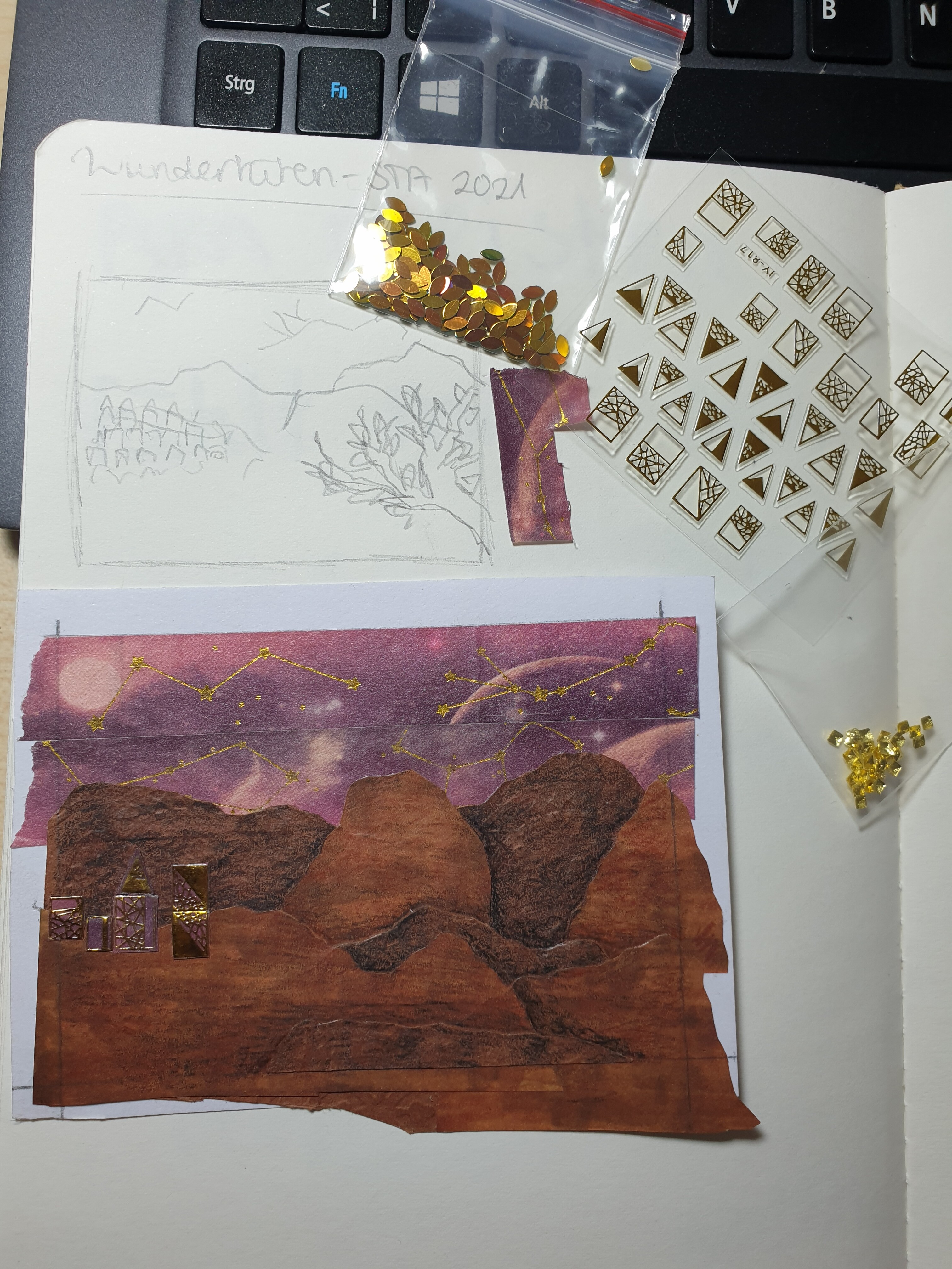Da kommt auch schon der nächste Zwischenstand - meine allererste Idee. Nach 7h Fertigstellen meiner Seminararbeit brauchte ich einfach etwas Kreatives…
