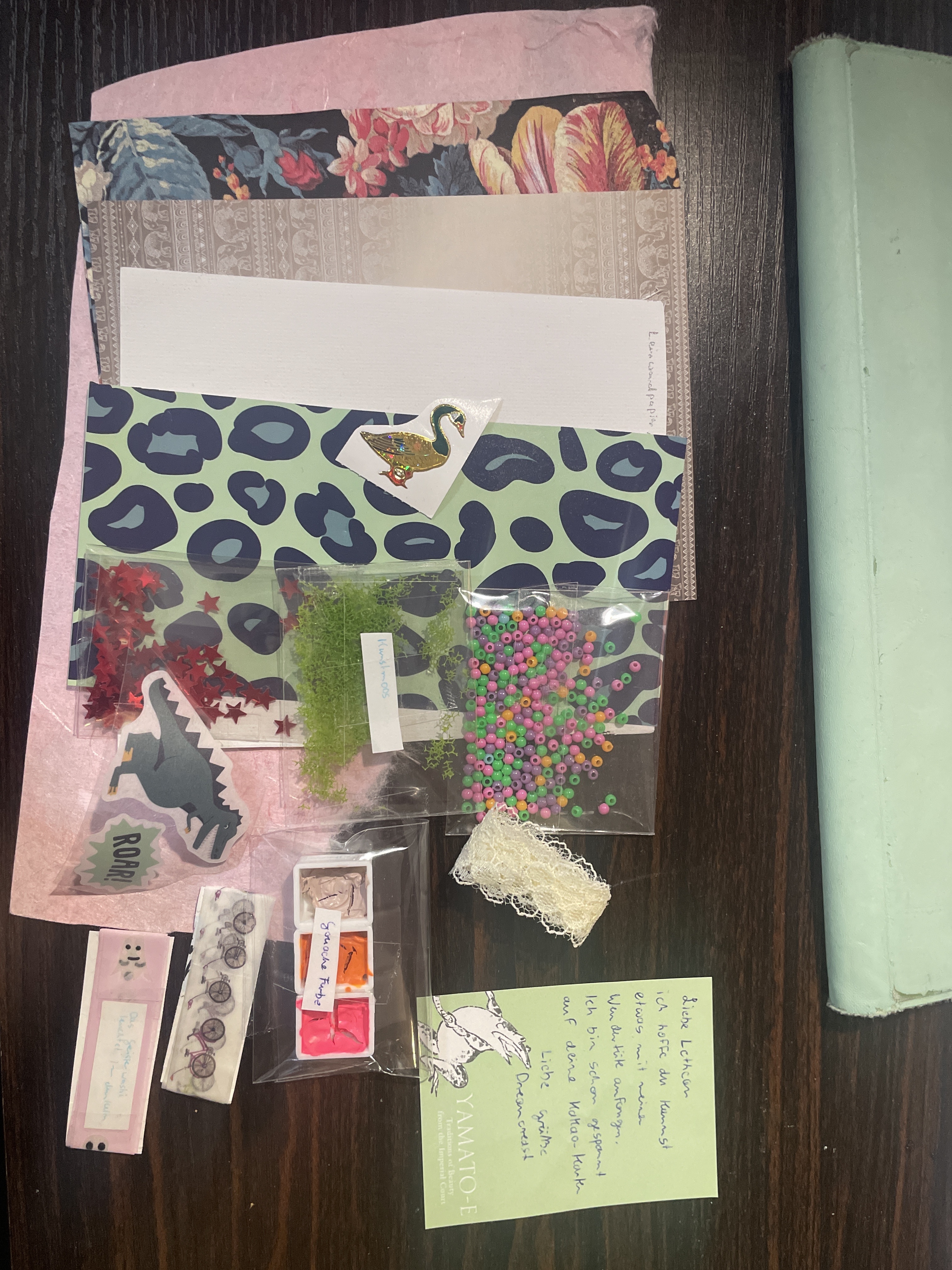 Super dass der Brief angekommen ist. Nach Rücksprache mit prayer at night muss der eine Sticker mit der Ente leider zurückgezogen werden da es sonst 16 Materialien sind. Lustig dass du dieselben Farben hast