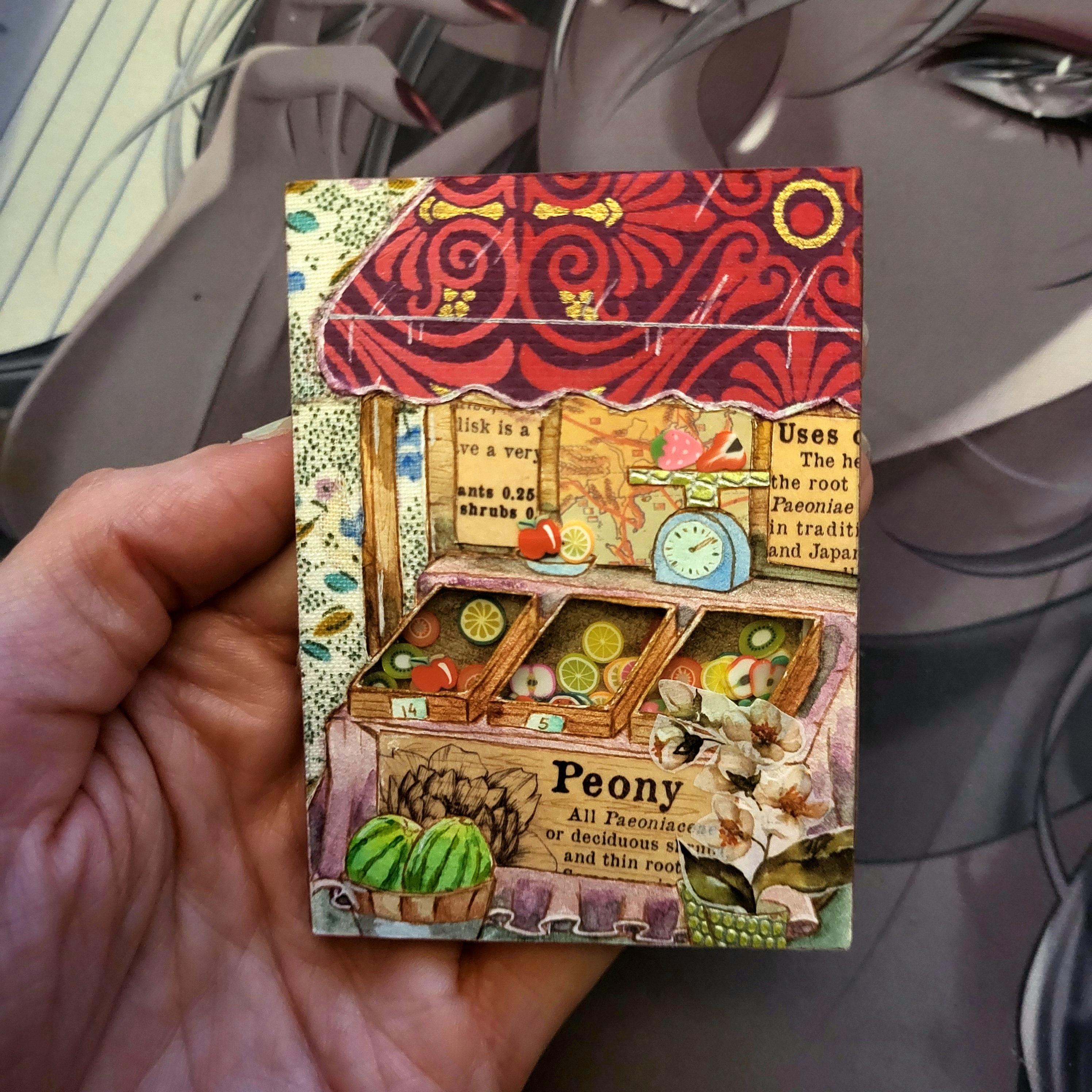Die dritte ist eine Schüttelkarte mit einem Marktstand geworden mit Früchten und Blumen.