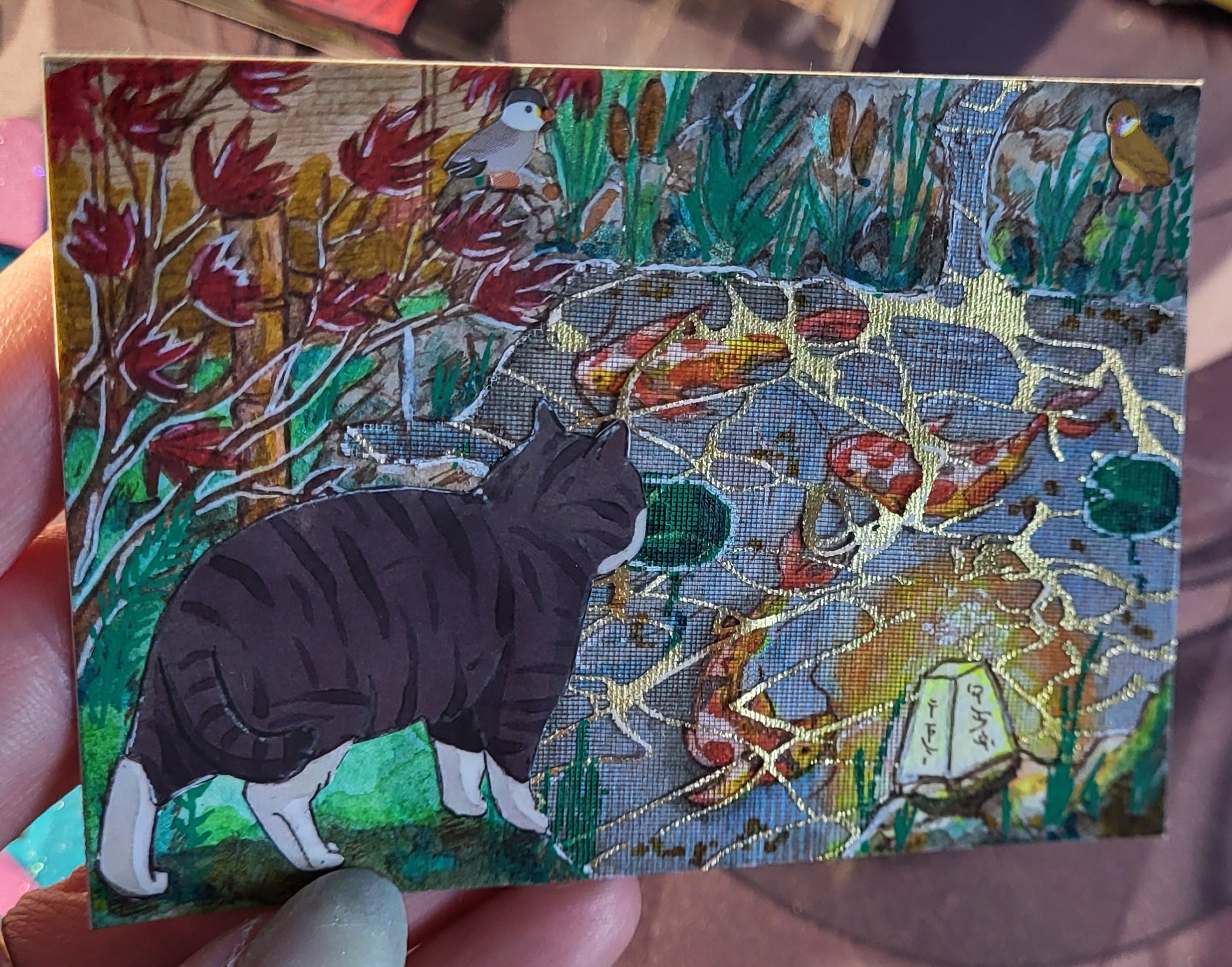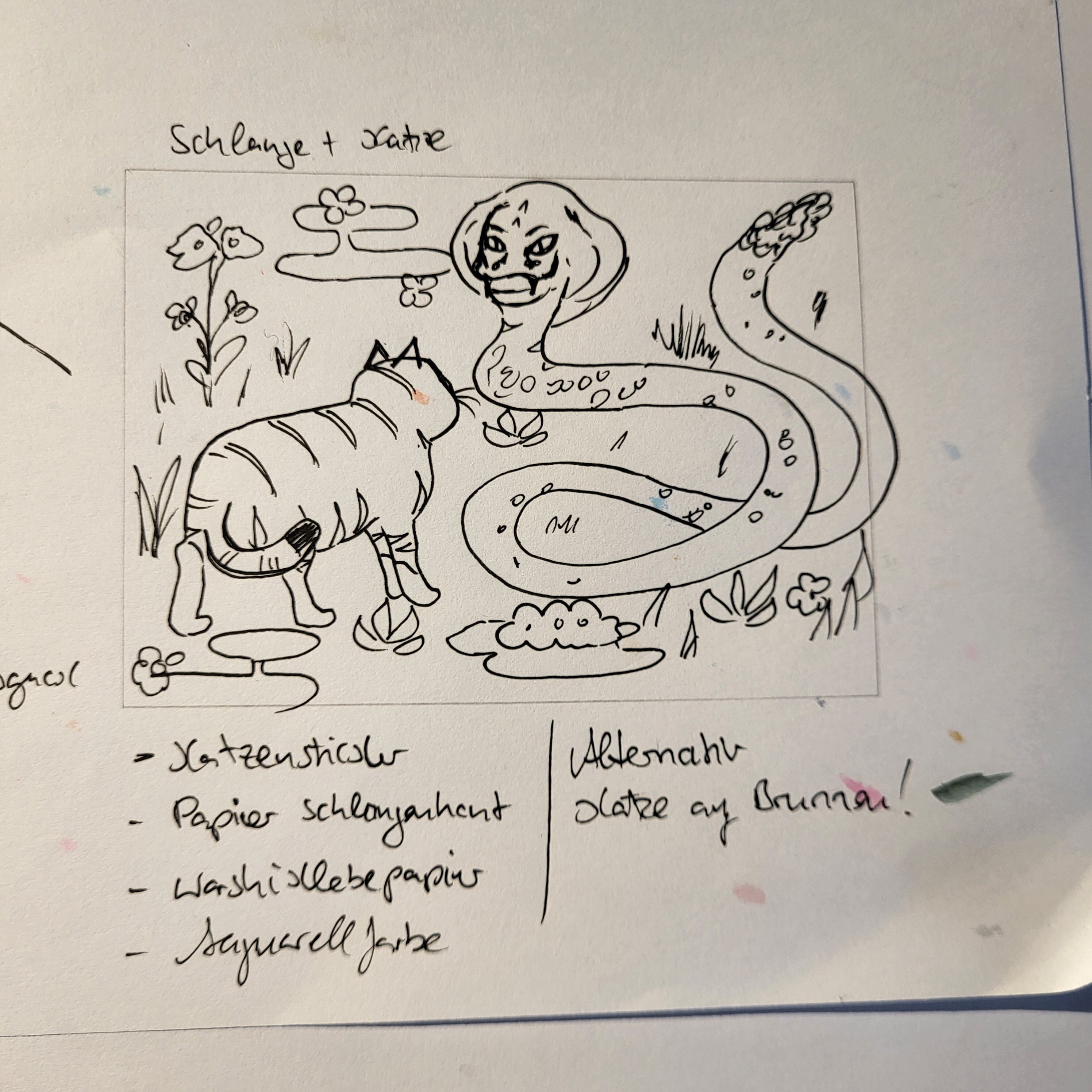 Hier habe ich mich nun für einen Teich entschieden an dem die Katze Fische und Vögel beobachtet.