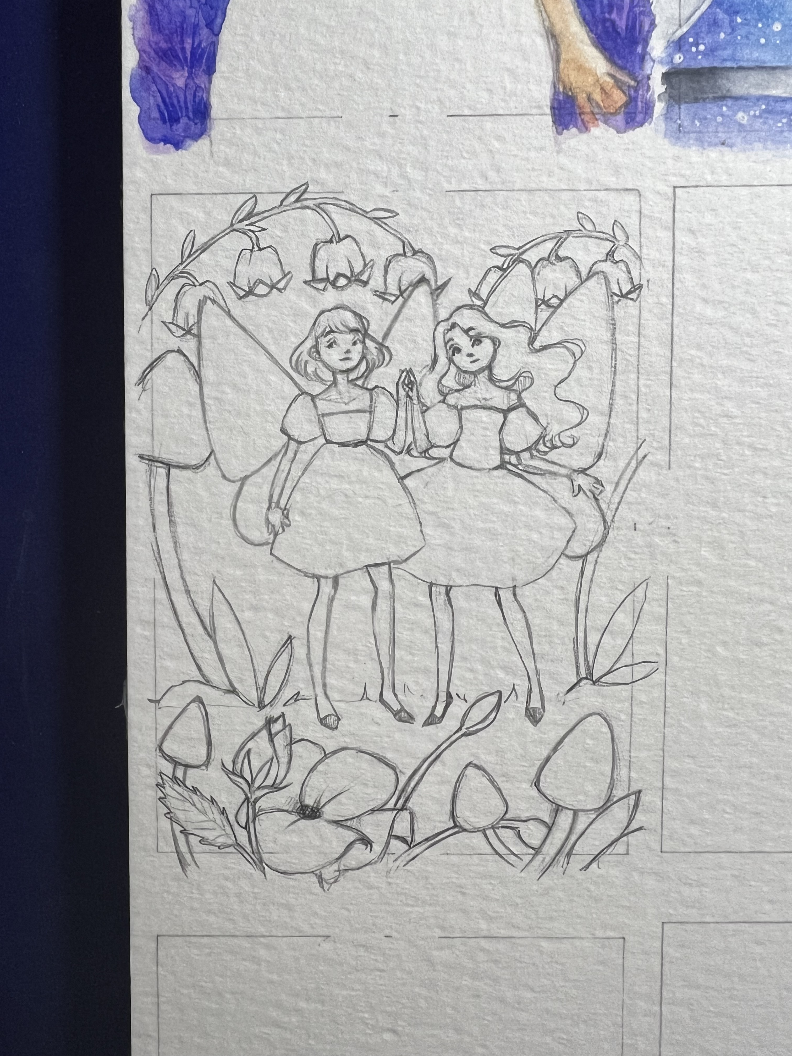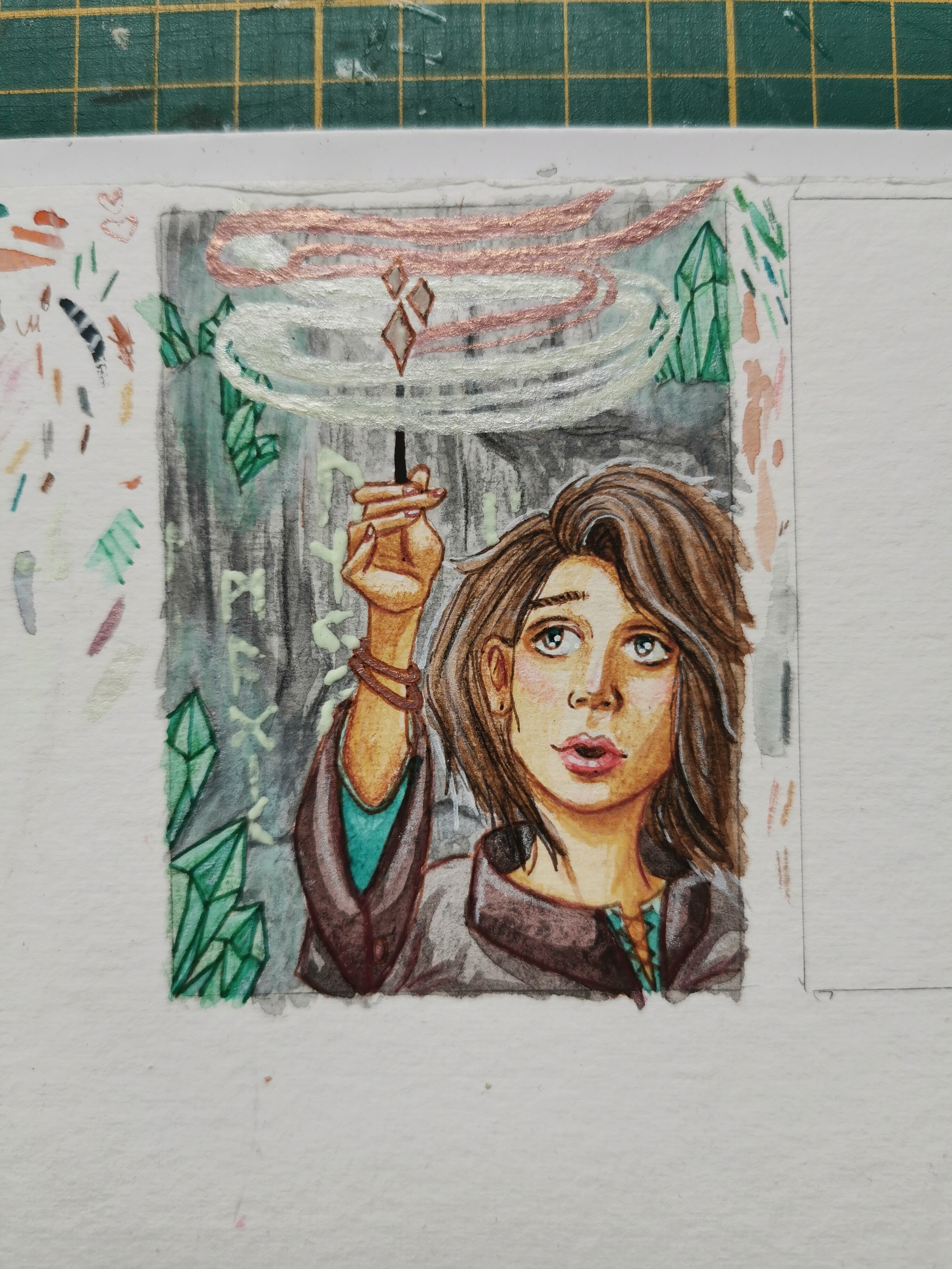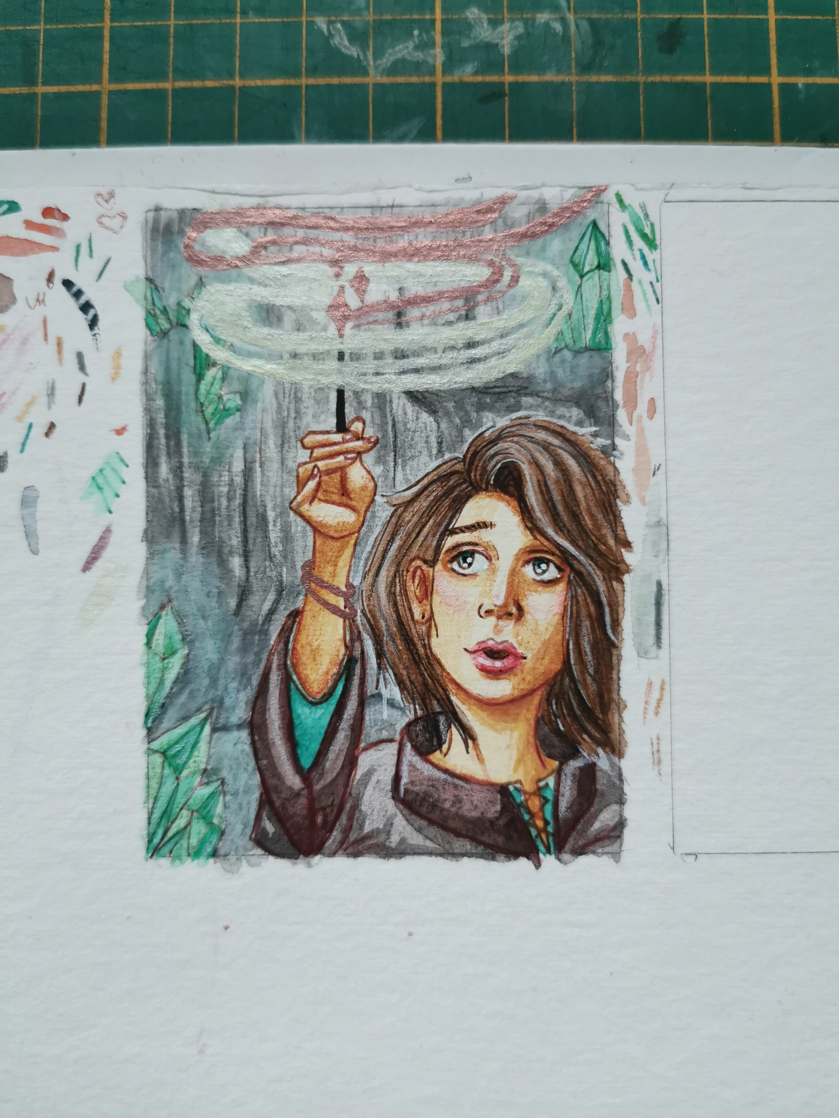 Meine nächste Skizze hab ich auch schon angefangen, eine junge Hexe die gerade einen Zauber austestet, verwenden will ich die 2 Metallic Aquarellfarben und die Nachtleuchtfarbe ^^ An den Hintergrund setze ich mich jetzt, ich dachte an eine Art Höhle :)