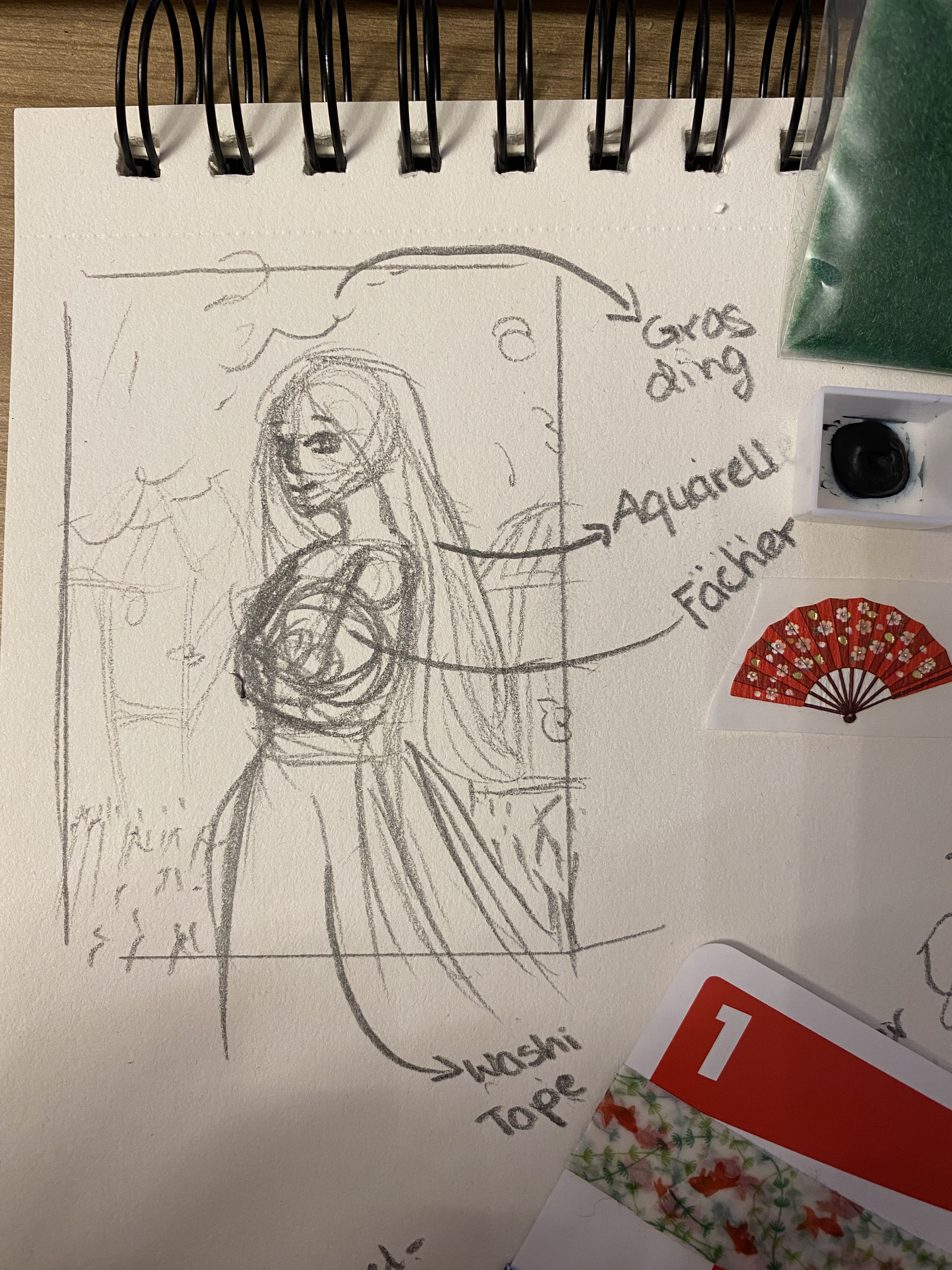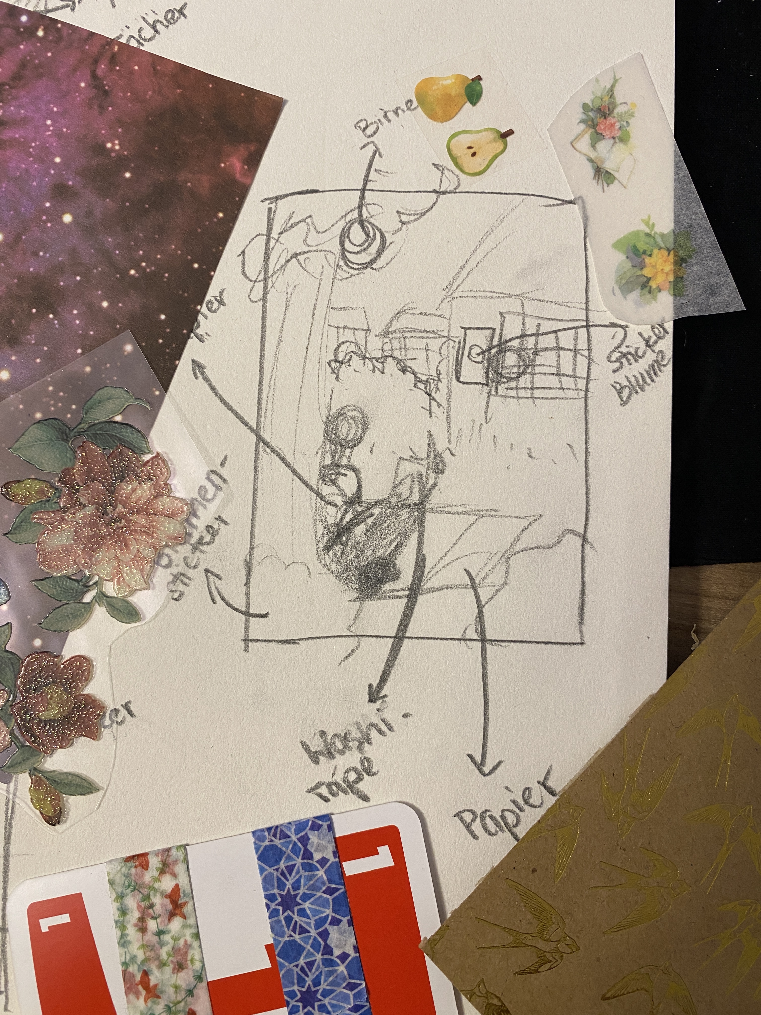 Ich habe auch mal meine erste Idee ausgelegt. Es wird hauptsächlich Bastelarbeit sein und weniger gezeichnet/gemalt. Ich hoffe das ist okay so @prayer_at_night