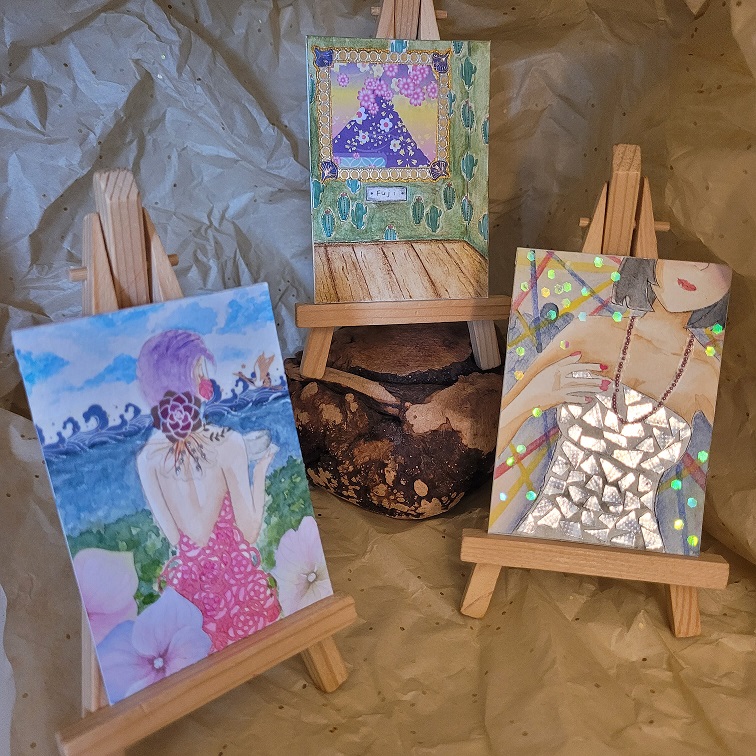 Cooles Motiv für Karte 2! Ich mag ihr Gesicht total, das hat viel Charakter! Die Hand ist n bisschen klein im Verhältnis zu ihrem Kopf, wenn man realistische Proportionen zugrunde legt. Wenn du also relativ realistisch zeichnen möchtest, könntest du nochmal schauen, dass du die vergrößerst. Kann aber natürlich auch eine Frage des Stils sein, deshalb musst du das natürlich nicht machen, ist mir nur aufgefallen. :)