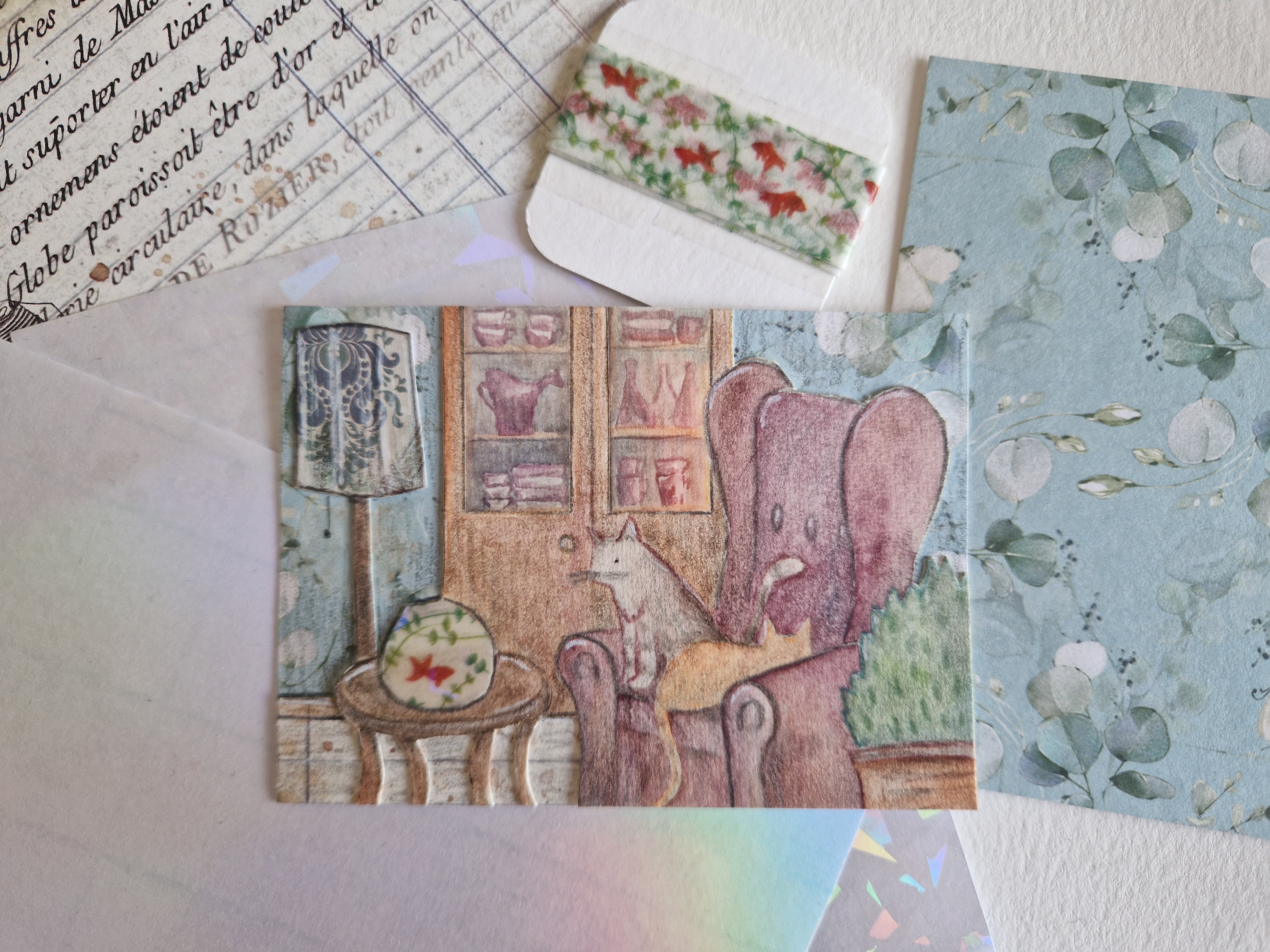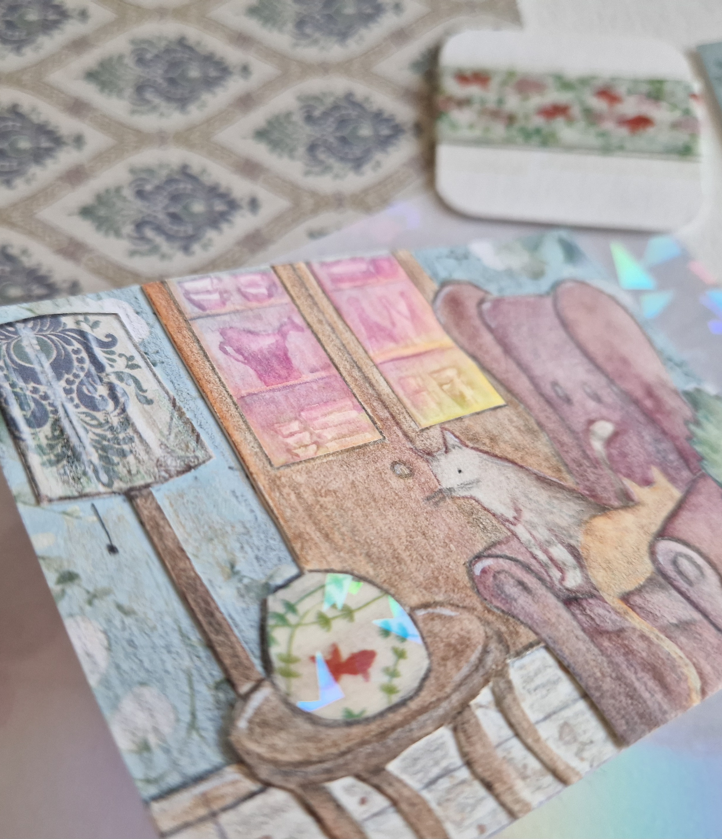 Nach Krankheit und dann Feiertagen bei den Eltern bin ich endlich auch wieder am Start :D Für das Wohnzimmermotiv hatte ich sowieso gedacht dass eine Katze super rein passen würde, ich habe eine auf den Sessel gelegt (aber noch nicht festgeklebt falls es nicht passt so). Die Schatten habe ich auch überarbeitet / hinzugefügt, ich hoffe man erkennt es auf dem Foto.
