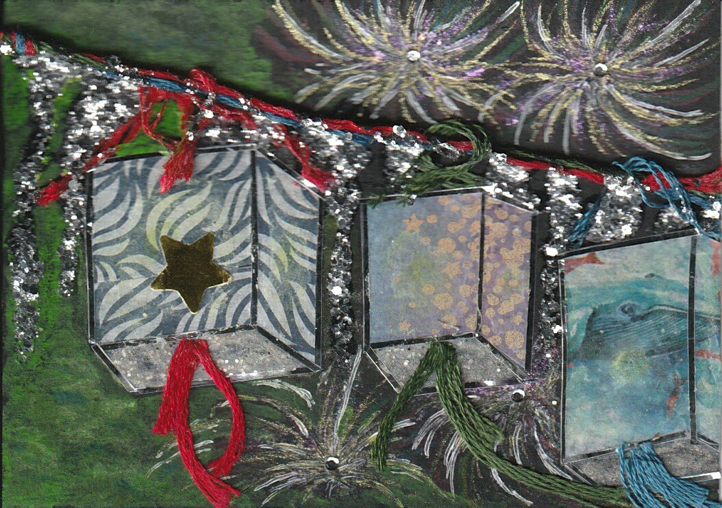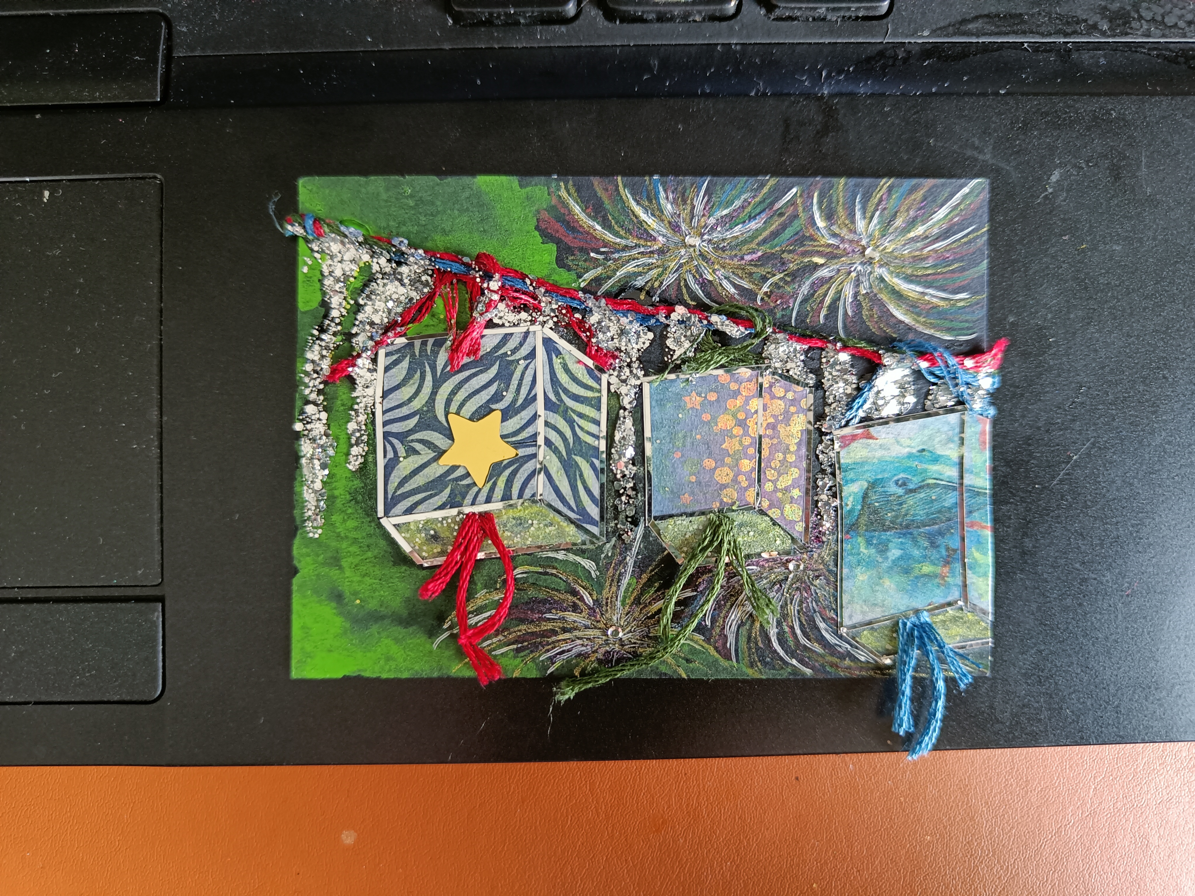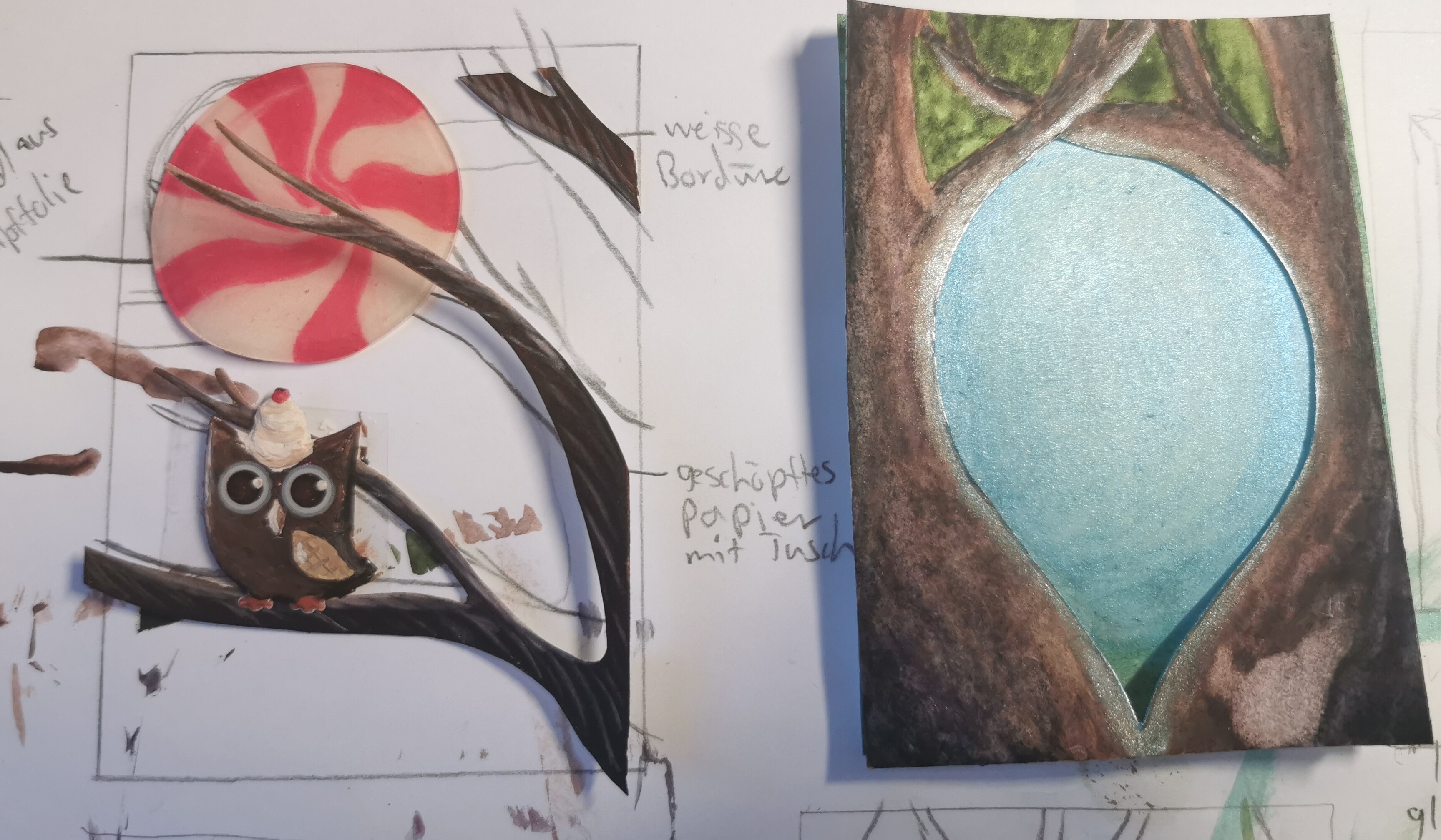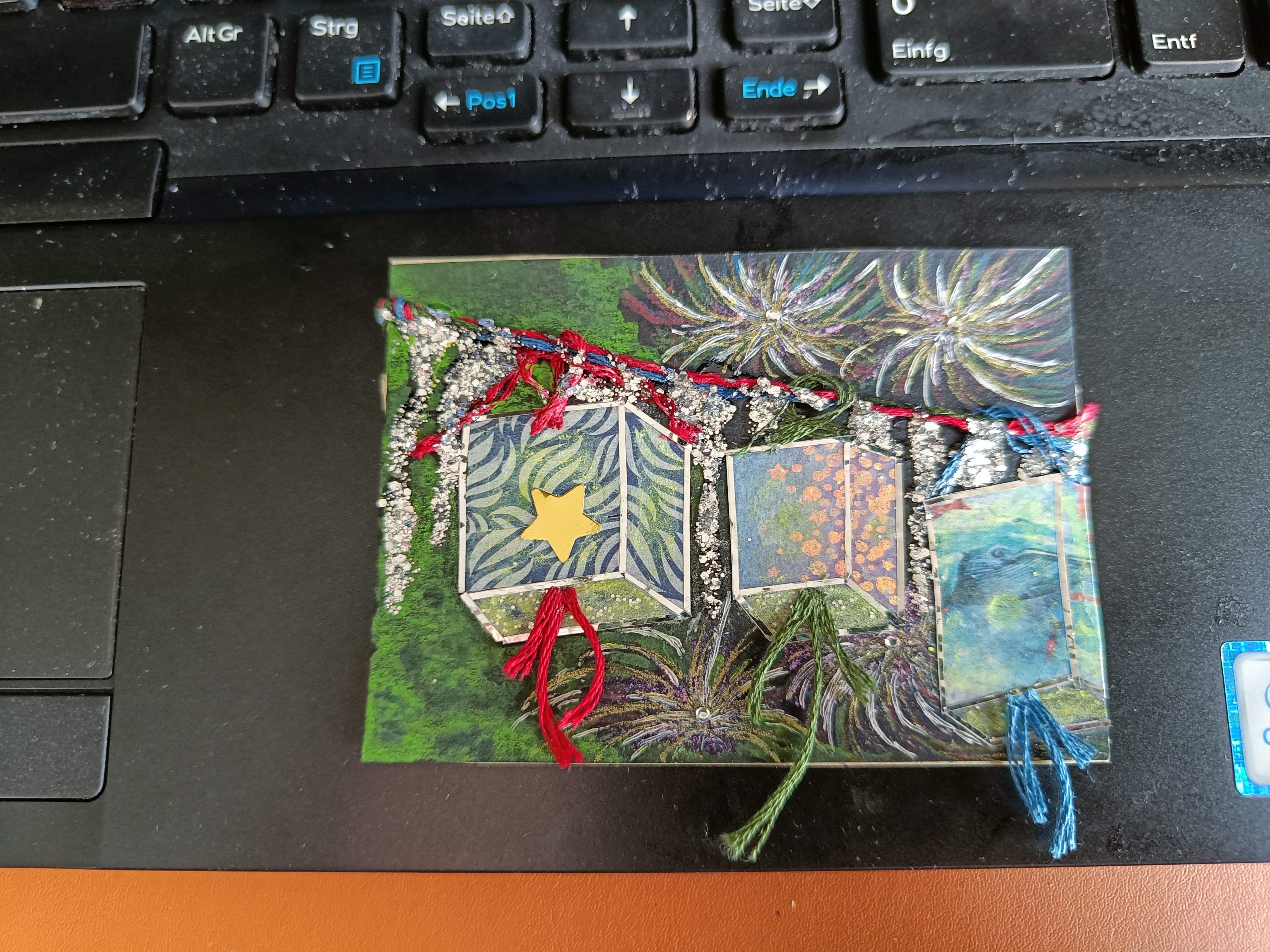 Bei der Schüttelkarte könntest du einerseits das Hintergrundpapier noch bearbeiten (leichten Farbverlauf, weil der Himmel ja oft irgendwo n bisschen heller/dunkler ist, oder ein paar Wolken oder so (natürlich nicht zu viele, man soll ja noch Sterne sehen können ;))), und überlegen, ob du einen Hingucker ins Motiv einbauen möchtest (anything of interest, ein Tier, ein Stück Ruine, eine leuchtende Statue, keine Ahnung! XD). Ich finde die Karte nicht per se zu simpel, aber aktuell könnte sie etwas flach oder unspektakulär wirken, deshalb die Tipps.