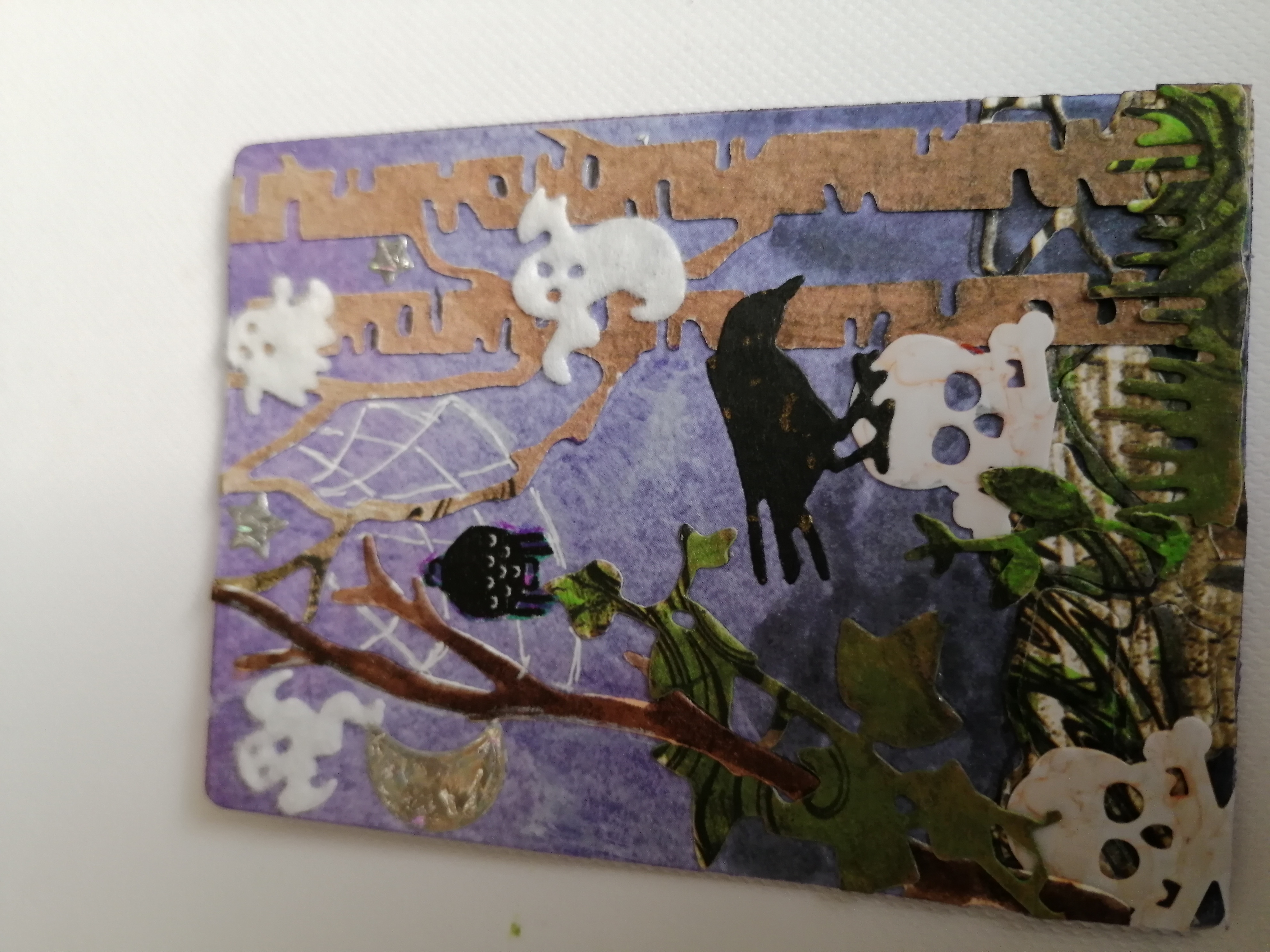 Die erste Karte gefällt mir ziemlich gut. Ich würde dich bitten allerdings die Karte unter Bücher oder so zulegen, da sie sich auf dem Foto scheinbar schon wellt. Die Umsetzung mit den Materialien finde ich sehr cool. Der zweite Beitrag gefällt mir auch sehr gut. Ich bin immer großer Fan von schaurig inspirierten Karten :)!