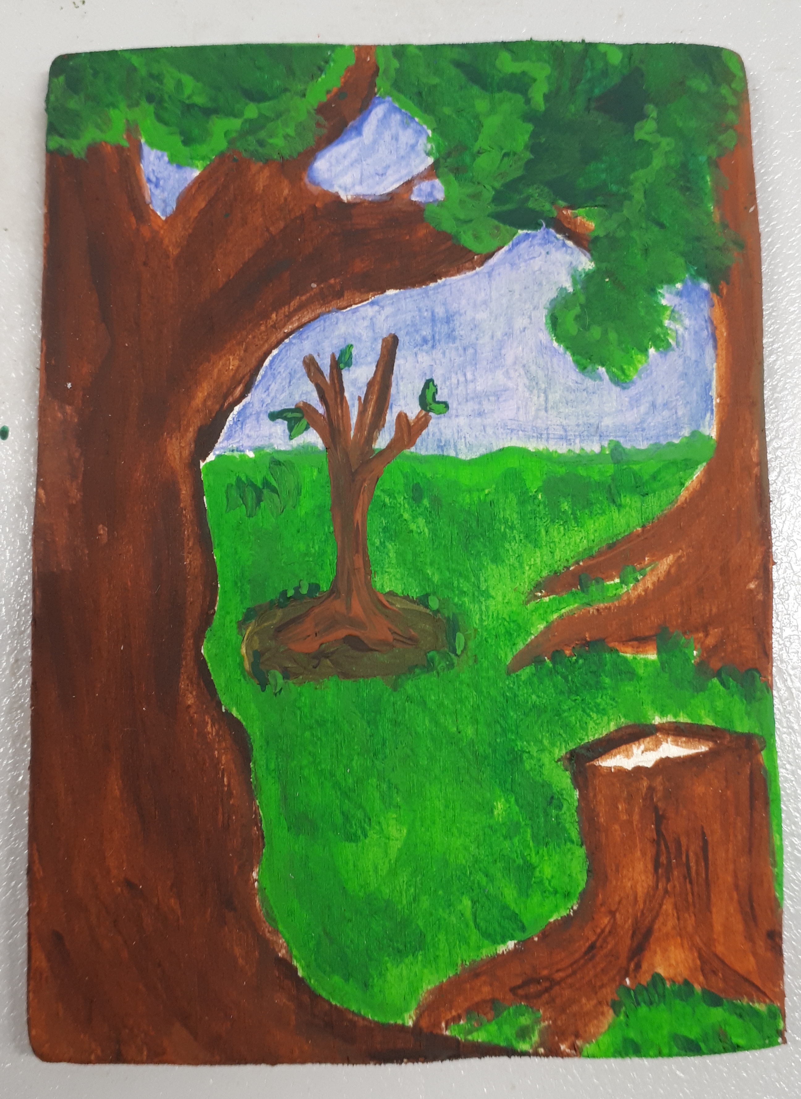 Acryl auf Spanplatte; inspiriert wurde das ganze von dem Lied “Wenn ein Mensch lebt” von den Puhdys. Genauer genommen von dem Abschnitt
