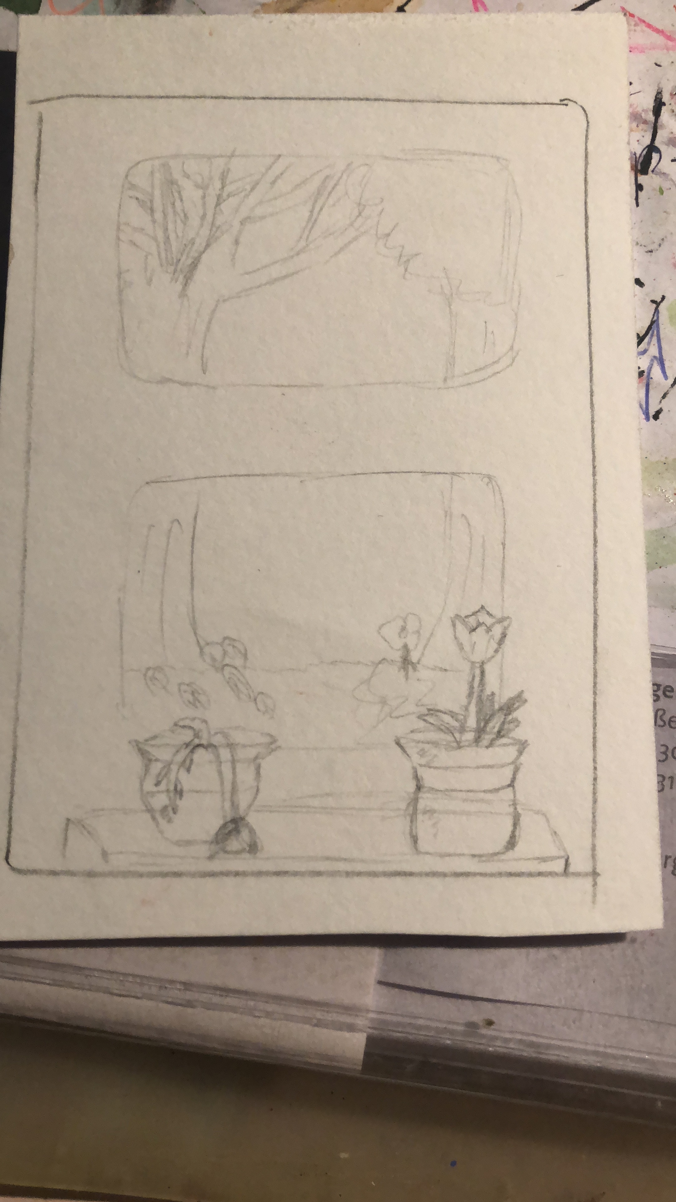 Sehr schöne Skizze :) beim Fensterrahmen bitte auf Kolo achten und noch je nachdem die Kanten mit Lineal ziehen. Normale Rahmen schauen auch bissl plastisch aus aber ich weiß hab nicht was das für eine Sorte wird XD