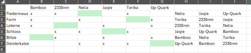 Weil es motivlich wahrsch. doch auch Präferenzen gibt, können wir ja auch abstimmen - oder wir nehmen einfach die erste Verteilung