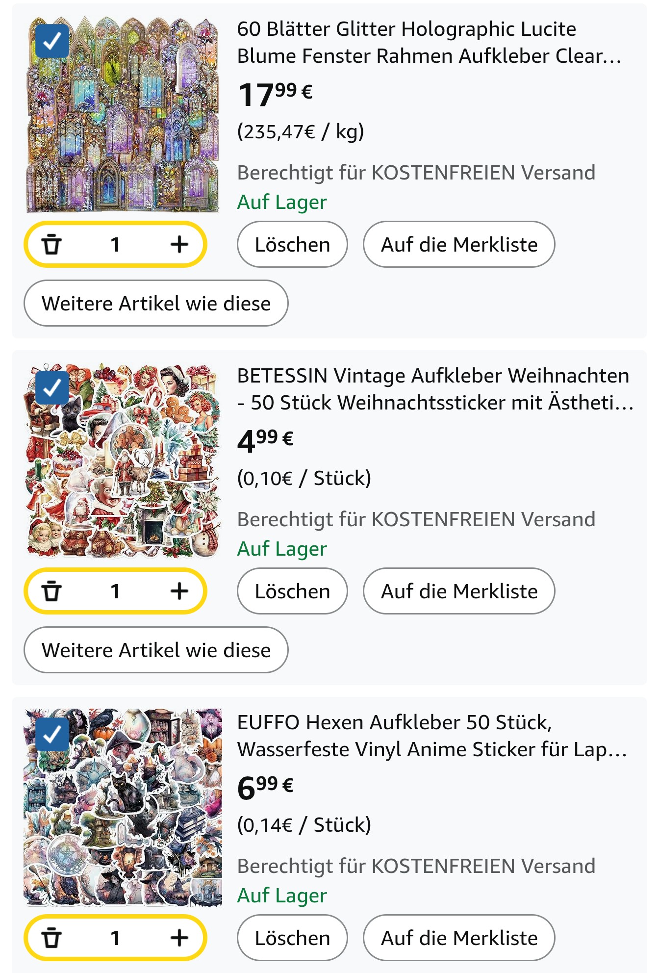 ich liebe diese wunderschönen Sticker, die man meist in 50er Packs bei Amazon bekommt oder auch hochwertiger auf Etsy z.B. Ich dachte mir, bevor ich aber wieder nen Großeinkauf bei Amazon dies bzgl. starte, frage ich erstmal, ob hier jemand Interesse hat, Sticker gegen Materialien zu tauschen. Transparenzsticker mit durchsichtiger Folie finde ich besonders interessant, auch gern mit Glitzereffekten und Shiny, etc.