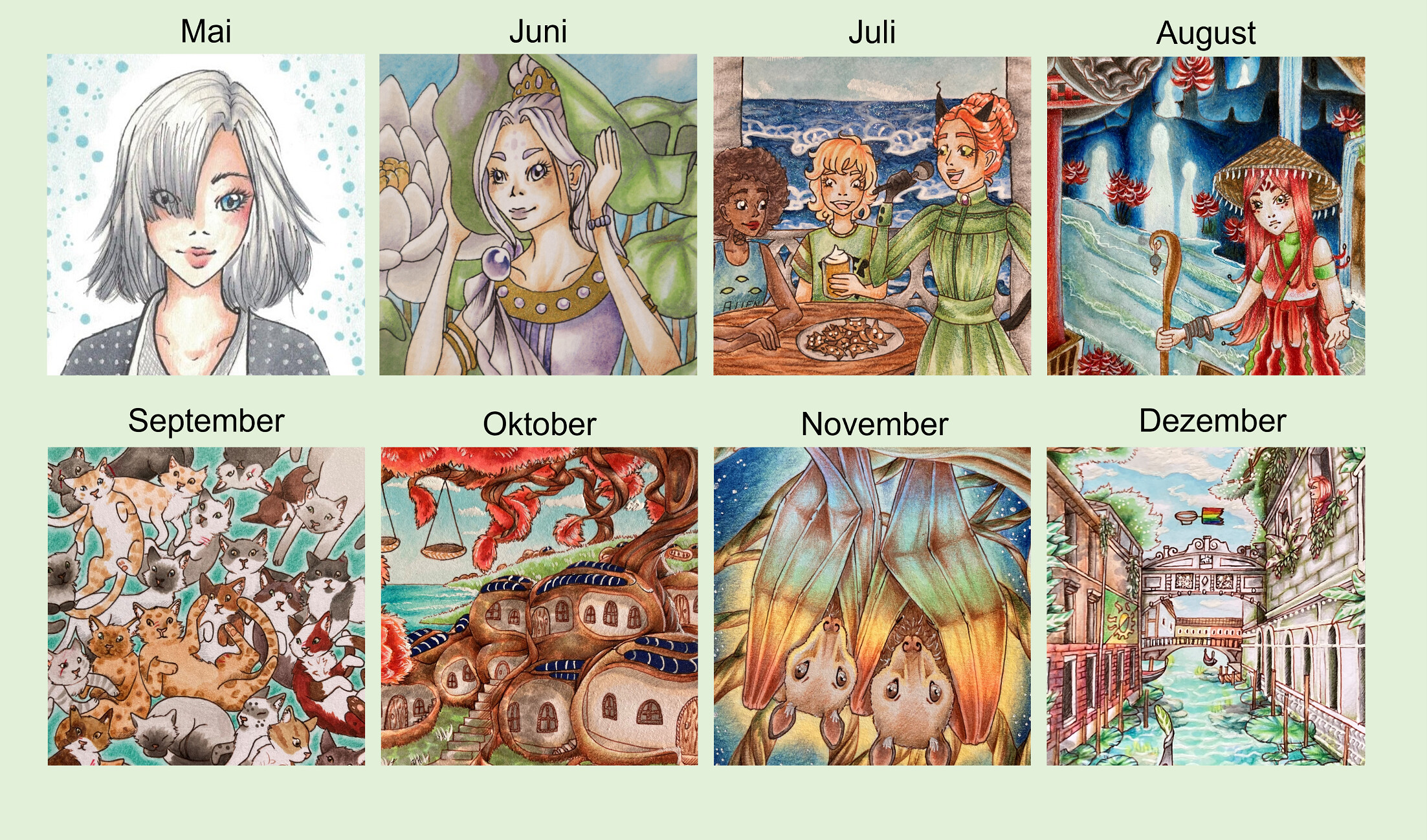 Novemberbild) und dass ich meinen Charakterdesigns ne Menge Zeit gewidmet habe (Dezember).