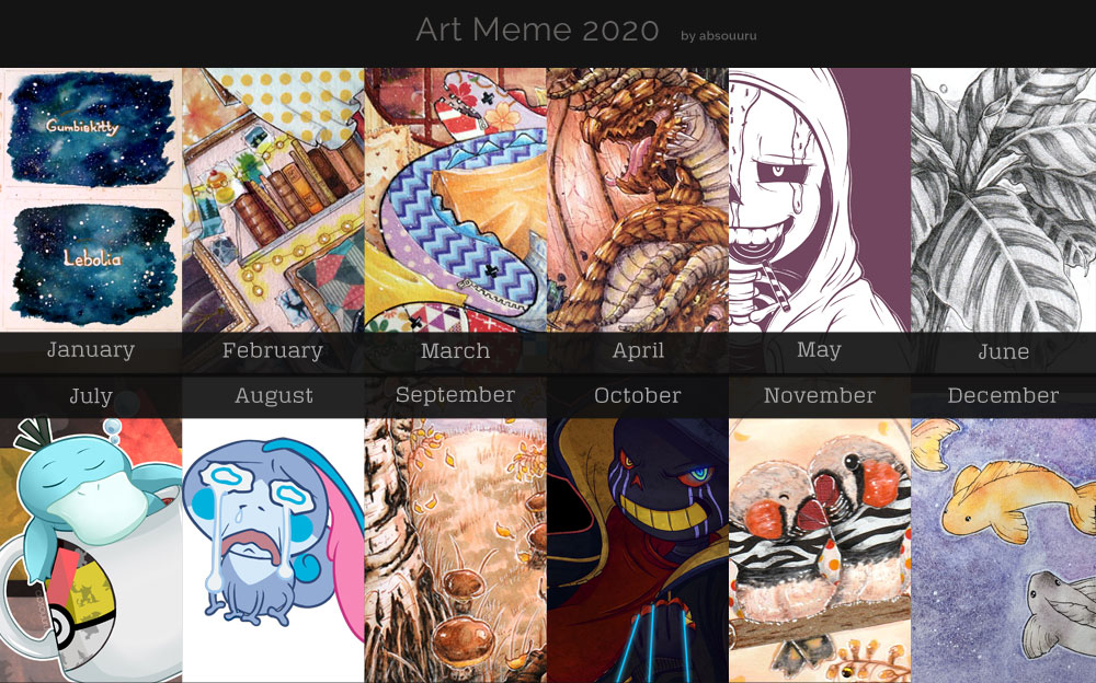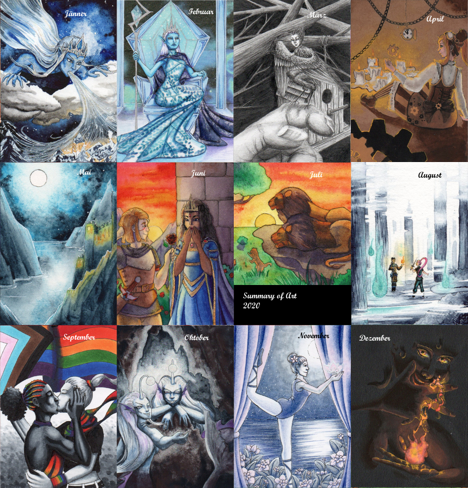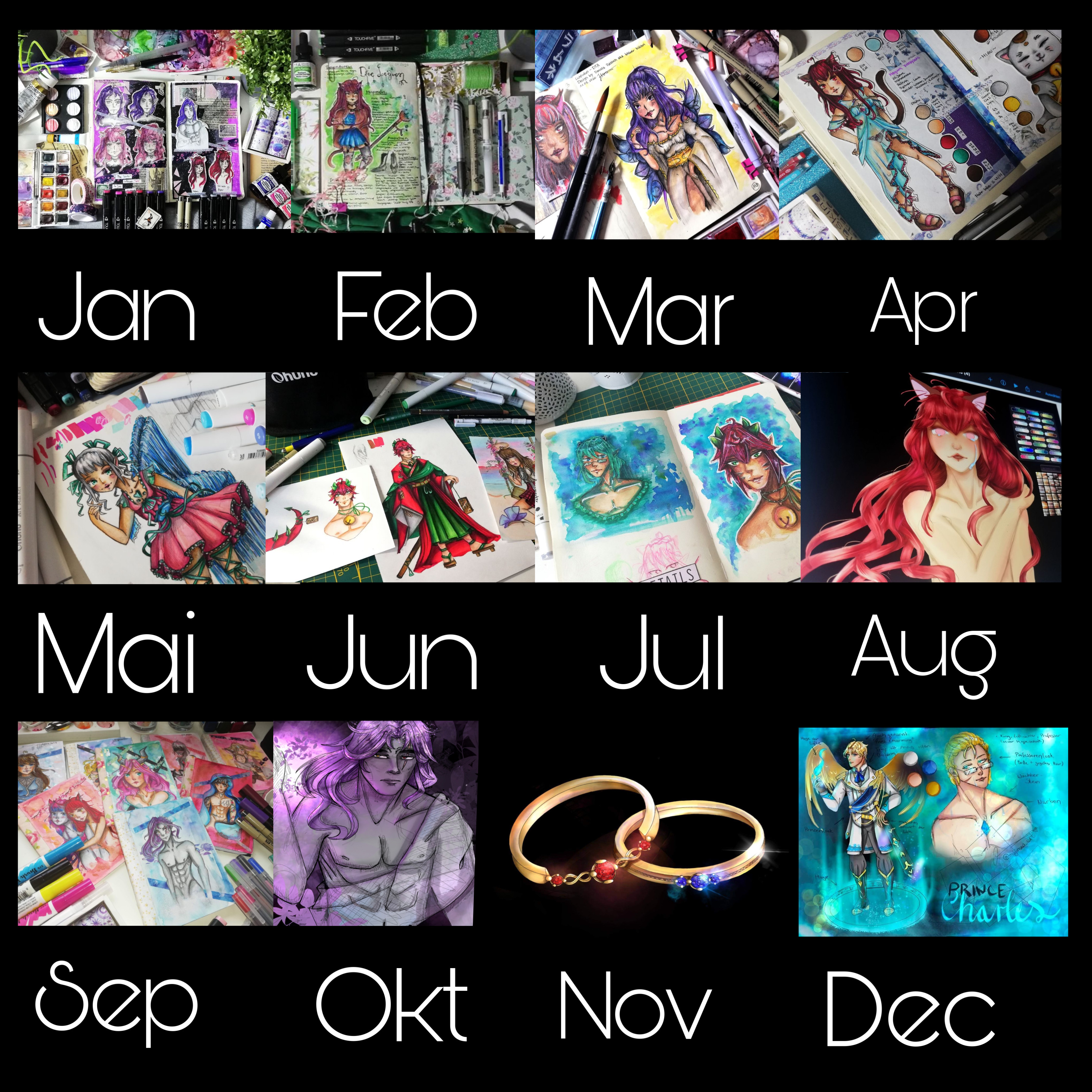 Ich hab tatsächlich für jeden Monat was gefunden und es sind sogar ein paar Kakaos dabei. Mitte des Jahres hatte ich eine traditionelle Phase. Und seit Oktober/November male ich Humans xD. Bin im großen und ganzen sehr zufrieden. Hätte mit meinen Zeichnungen von den letzten drei Monat jeweils eine eigene Summary füllen können, so viel wie ich da gemalt habe.