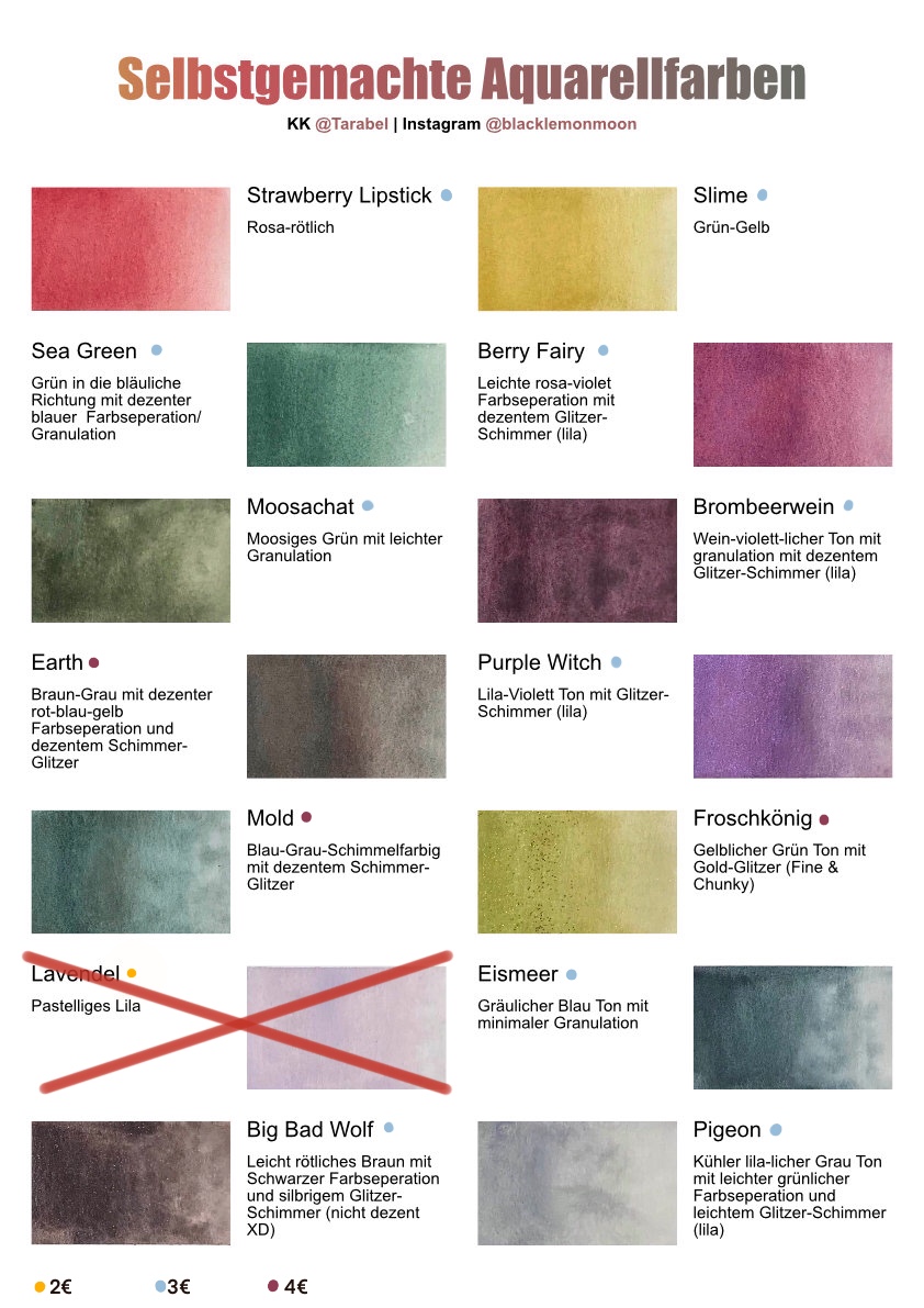 (Von oben links nach unten rechts: Berry Fairy, Slime, Pigeon, Eismeer, Strawberry Lipstick, Rusty Orange (nicht vorhanden))