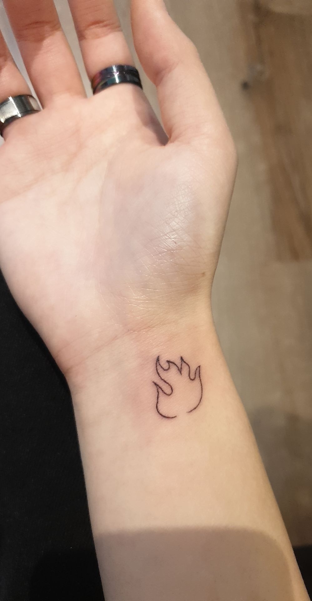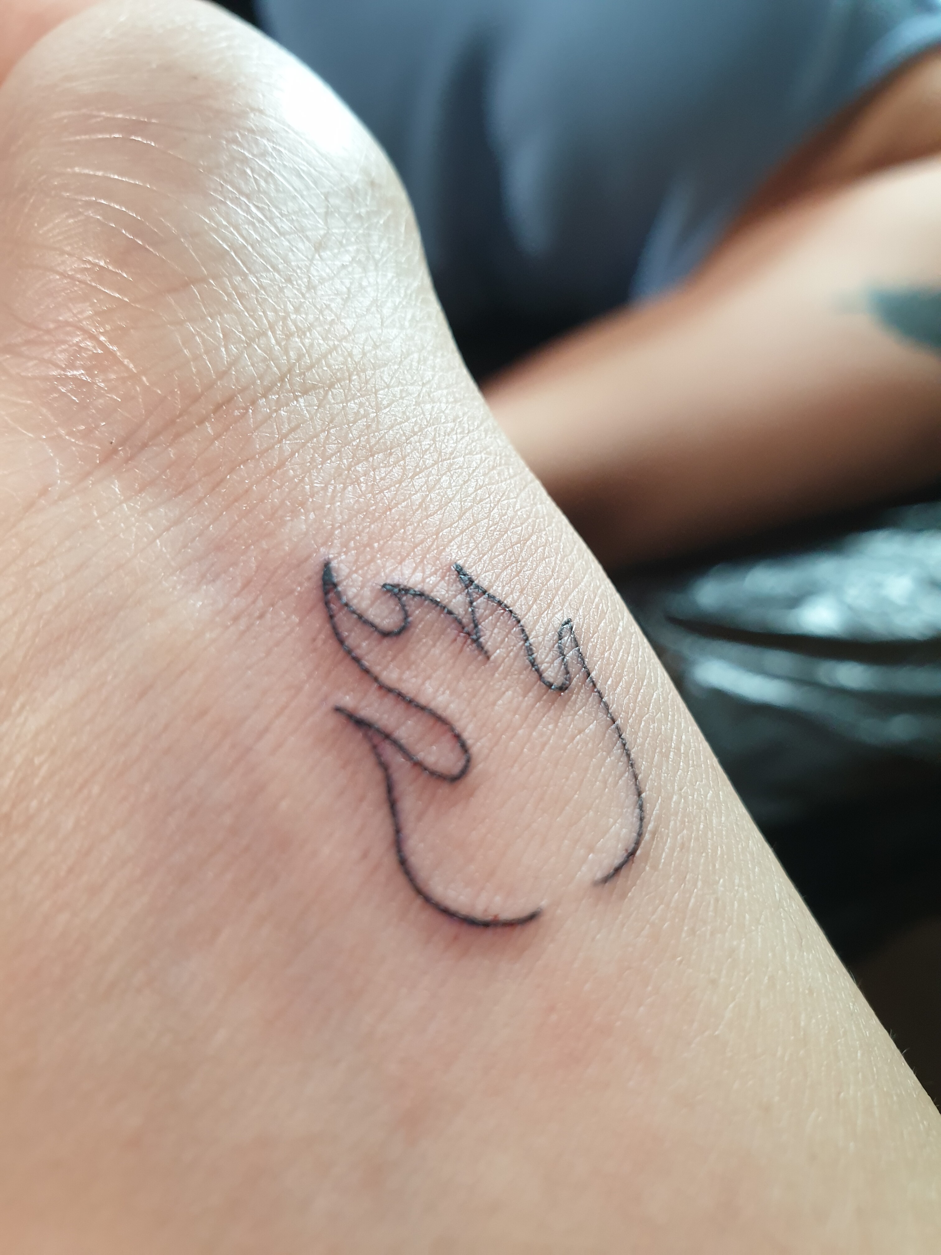Mit 18 bin ich dann zum tattoowierer hin, mit nem sehr simplen geometrischen tattoo, was auch eine Bedeutung für mich hatte. Jeweils so n Zeichen am handgelenk