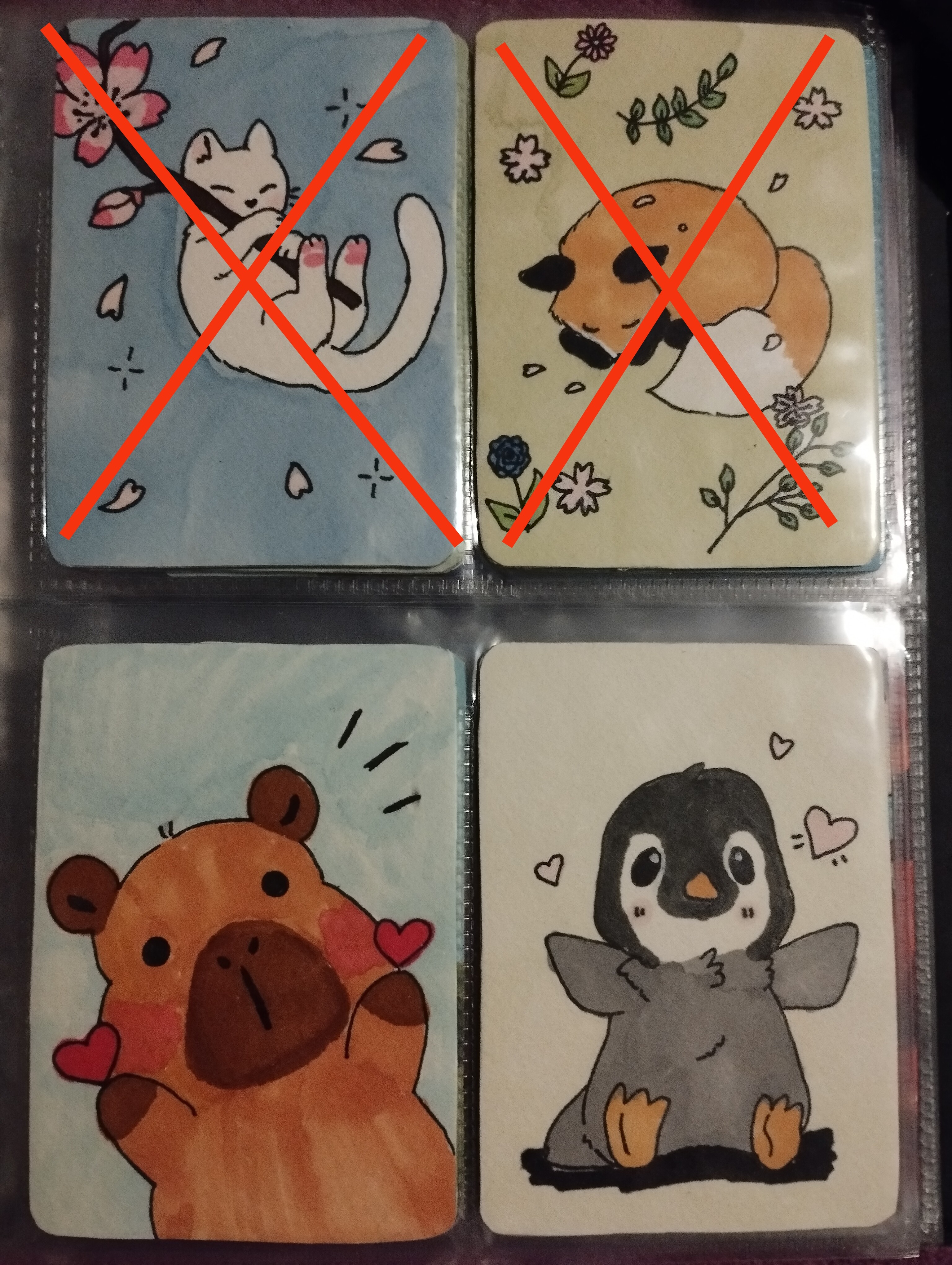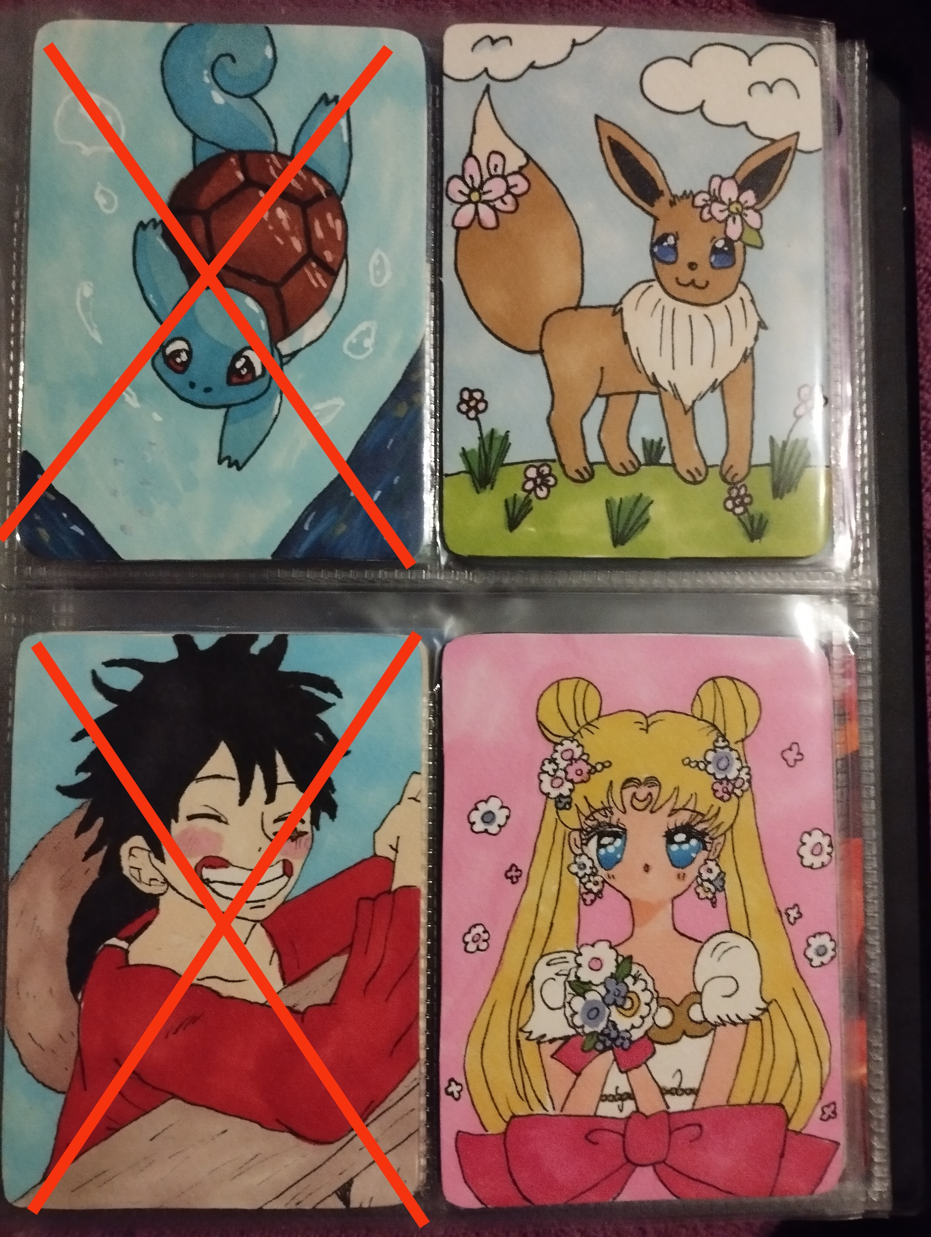 Ich finde es schade wenn sie wegwerfen muss, deshalb möchte ich an der Stelle fragen ob jemand Interesse hat welche zu tauschen. Entweder gegen Karten die keiner haben möchte oder Gegenstände wie Mangas die ihr vielleicht zu viel habt oder nicht mehr braucht.