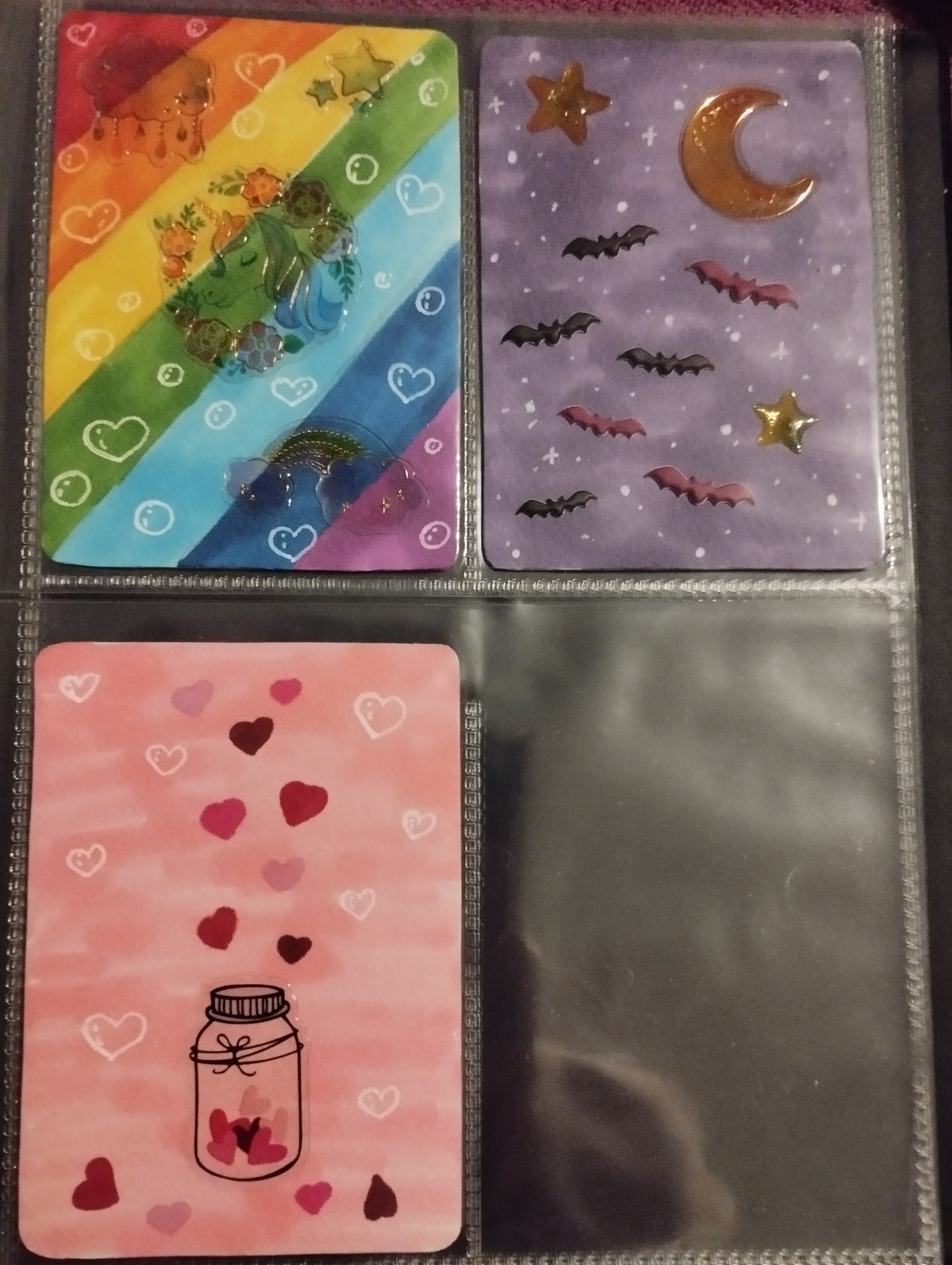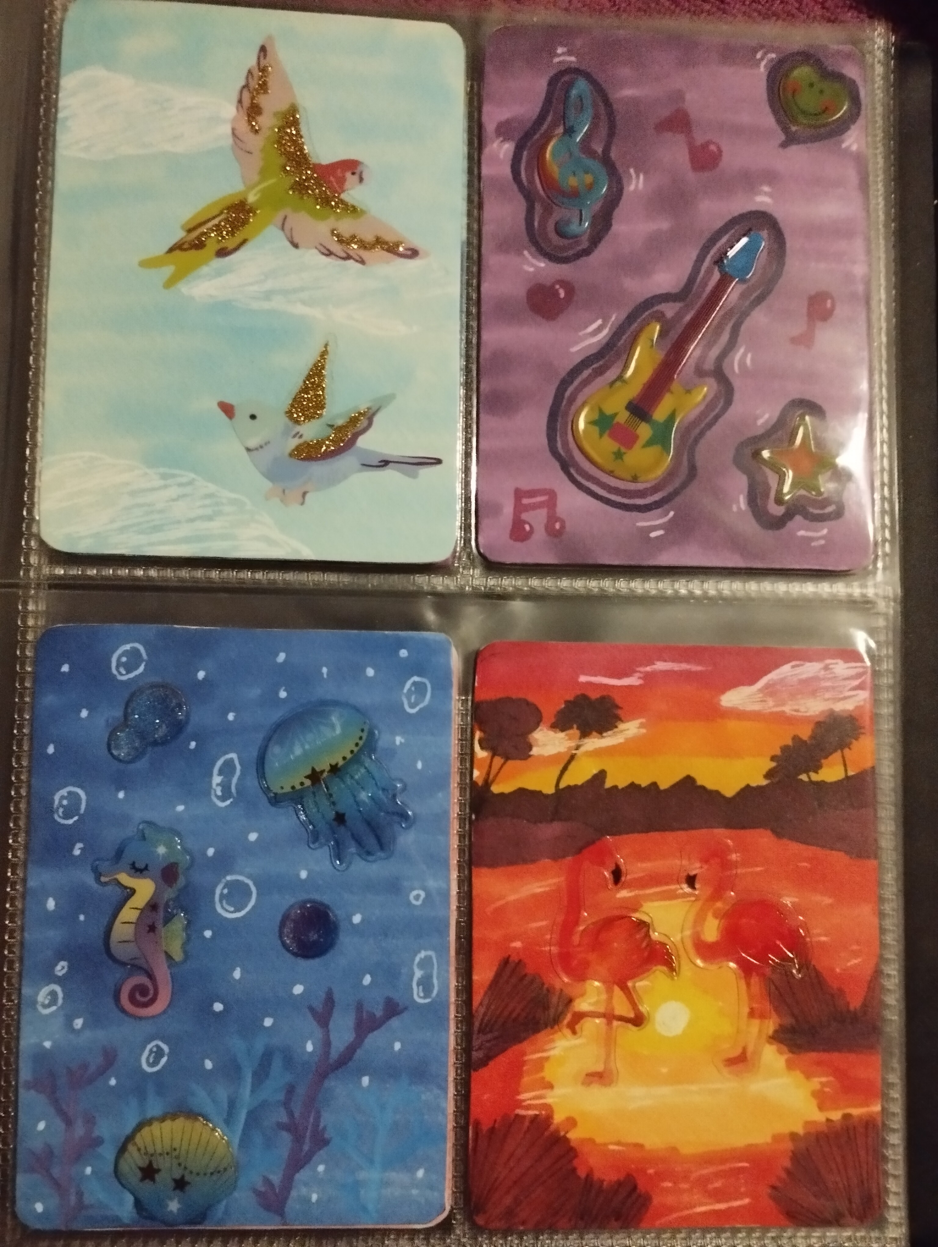 Folgendes die Bilder 1-3 sind abgemalte Karten, die Bilder 4-7 sind mit Sticker beklebt nur der Hintergrund ist bemalt.