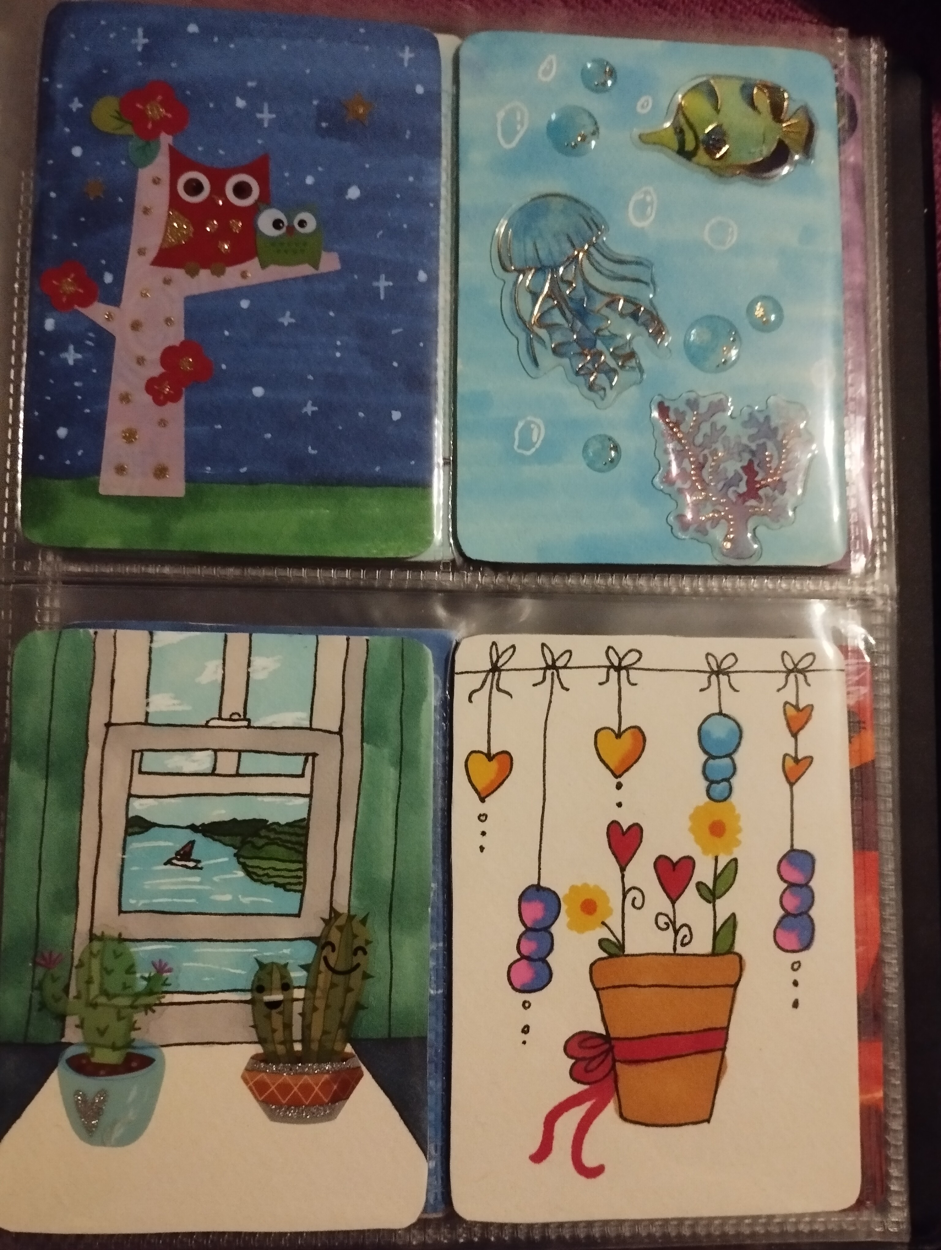 Ich übe ab und zu das Zeichen auf Karten mit abgerundeten Ecken, weshalb ich diese Karten nicht in meiner Galerie gelistet habe. Es sind nur Karten auf denen ich geübt habe.