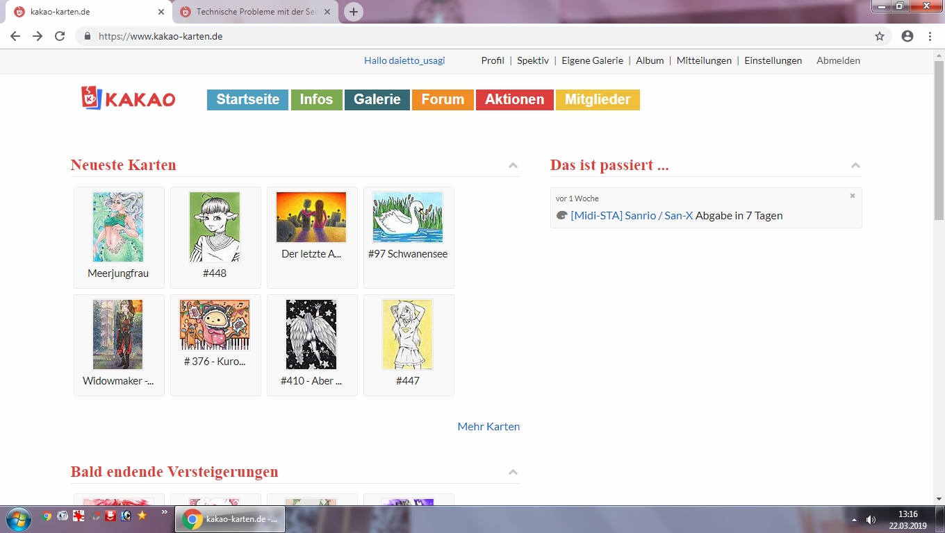 Îch habe das Problem am Handy auch - es geht weg, sobald ich die Seite neu lade, aber wenn ich zwischen Forum und Galerie wechsle, lädt es zuerst genau den Screenshot, den du zeigst (bzw im Forum den Stand vom 19.03.), aber wenn ich dann die Seite neu lade, habe ich wieder den aktuellen Stand (wenn ich dann im Forum/in der Galerie bleibe und nur zwischen Threads wechsle oder so, bleibt es auch aktuell, ich habe das Problem nur bei Wechsel zwischen Forum und Galerie).