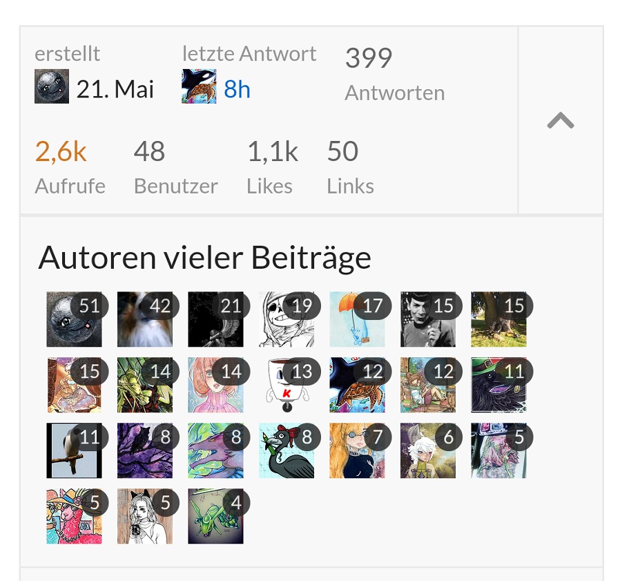 Bei jeder Aktion gibt es auf der Forumsseite am Anfang so eine kleine Übersicht, wann sie erstellt wurde etc und direkt darunter die Autoren mit den meisten Beiträgen: