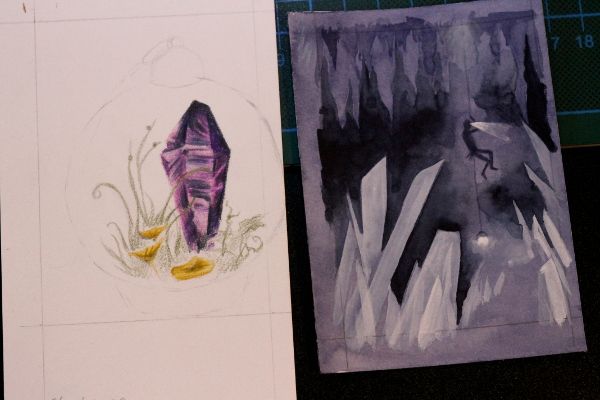 Die Entscheidung war nicht leicht gewesen :P …bei deinem Wunsch hatte ich schon ein richtiges Bild im Kopf, das ich gerne gezeichnet hätte, allerdings etwas anders, als du es hier umgesetzt hast. Doch deine Version des Szenarios gefällt mir, sieht klasse aus! Die Farben sind sehr passend und die hohen Kristalle sind jetzt schon ein richtiger Hingucker.