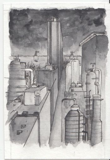 Mir gefällt die erste Skizze auch besser. Ich würde da die Linien für die Fenster recht parallel halten und nur leicht neigen, sodass man merkt, dass es nach hinten kleiner wird. Der Fluchtpunkt der Linien kann ja auch ziemlich weit außerhalb des Bildes liegen.