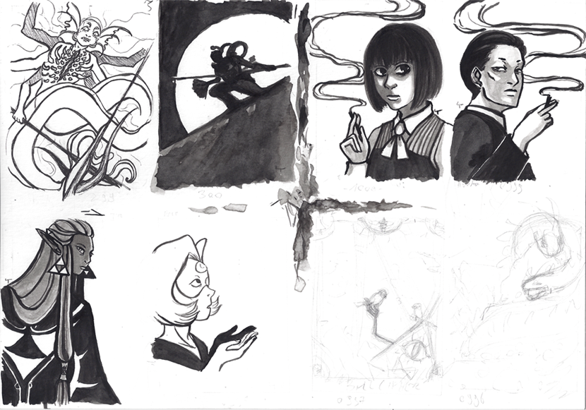 Bei den 3 danach hab ich eigtl. nur noch vor das gane etwas bräunlich zu grundieren. Die Zelda bekommt Blattgold udn Peridot kriegt tatsächlich Farbe. Ich wollte die Lines bei ihr eigtl. Blau machen, aber da de Tinte löslich ist würden sich die Lines beim färben anlösen, also dezente Tuschelines.