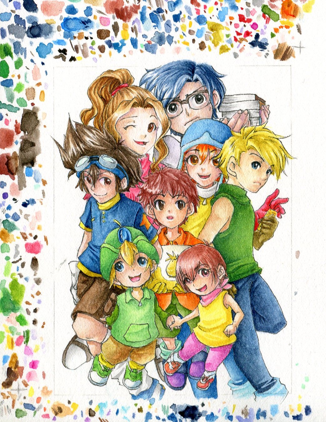 Also ich könnte mir auch einen blau-schwarzen Hintergrund gut vorstellen, vielleicht auch ein paar “Pixel” einbauen oder Code, wie man es aus Digimon kennt