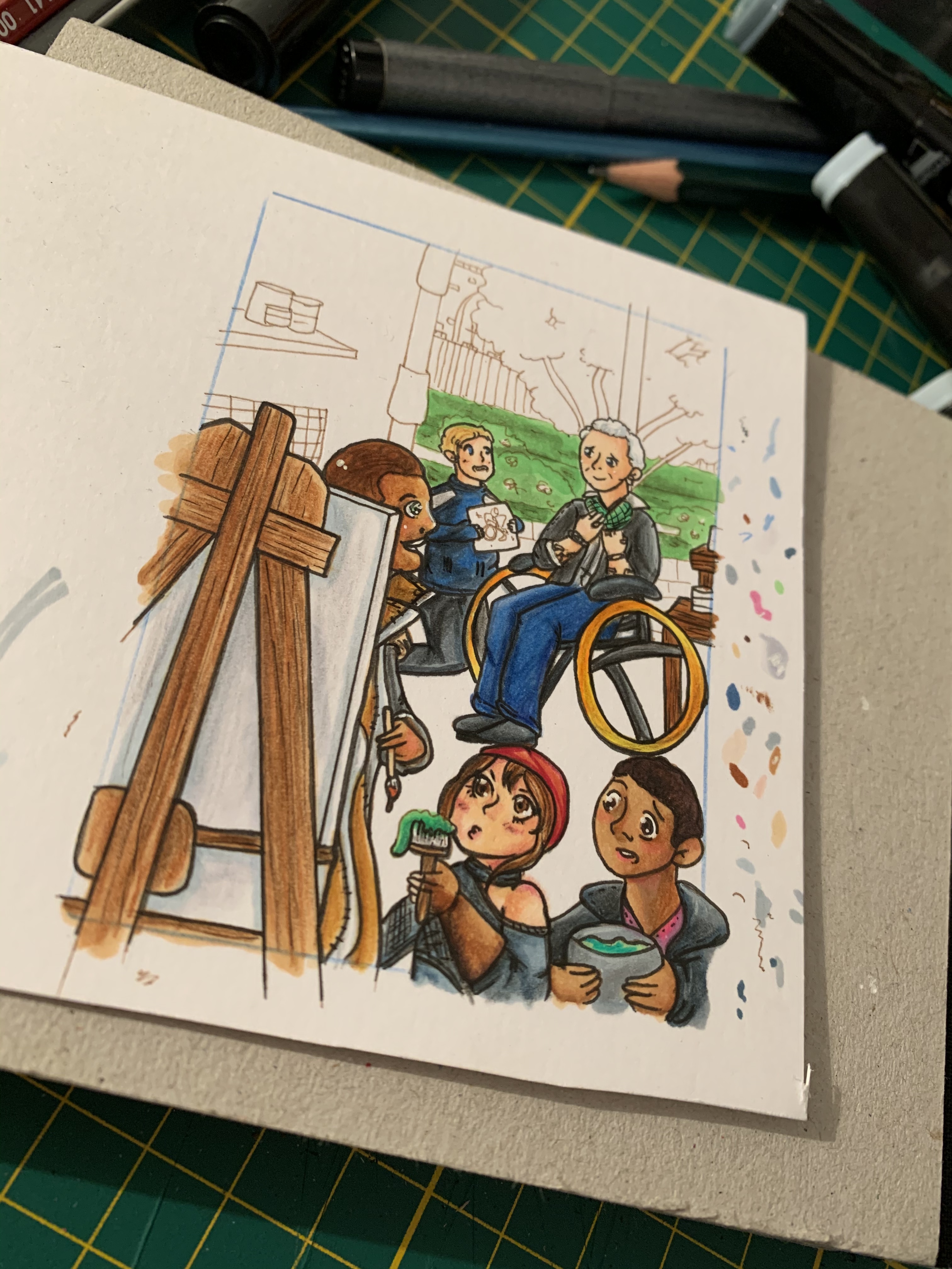 Hier ist eine meiner angefangenen Karten. Findet ihr die Wiese ist zu leer? Soll ich da noch eine Blume hinkleben?