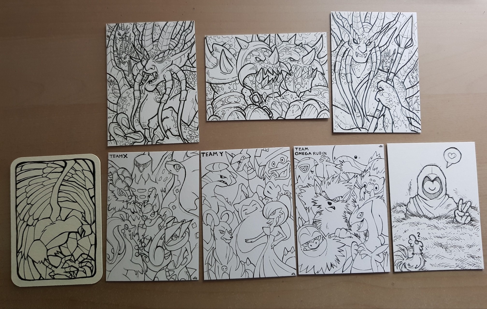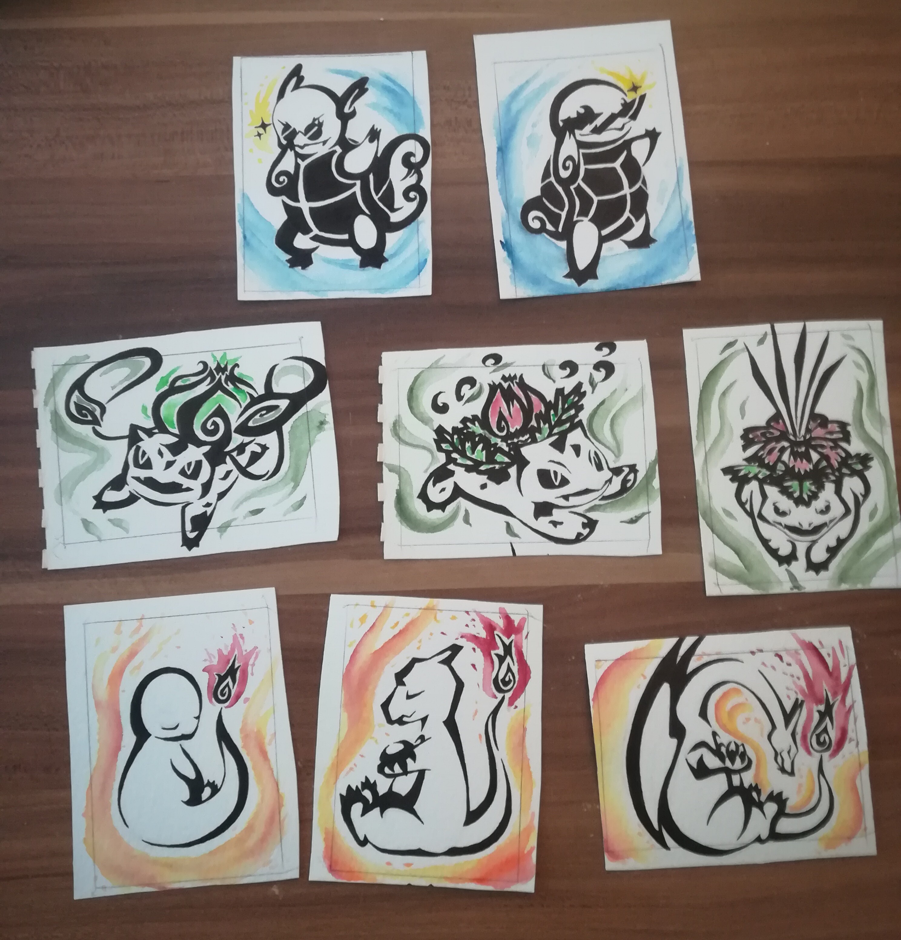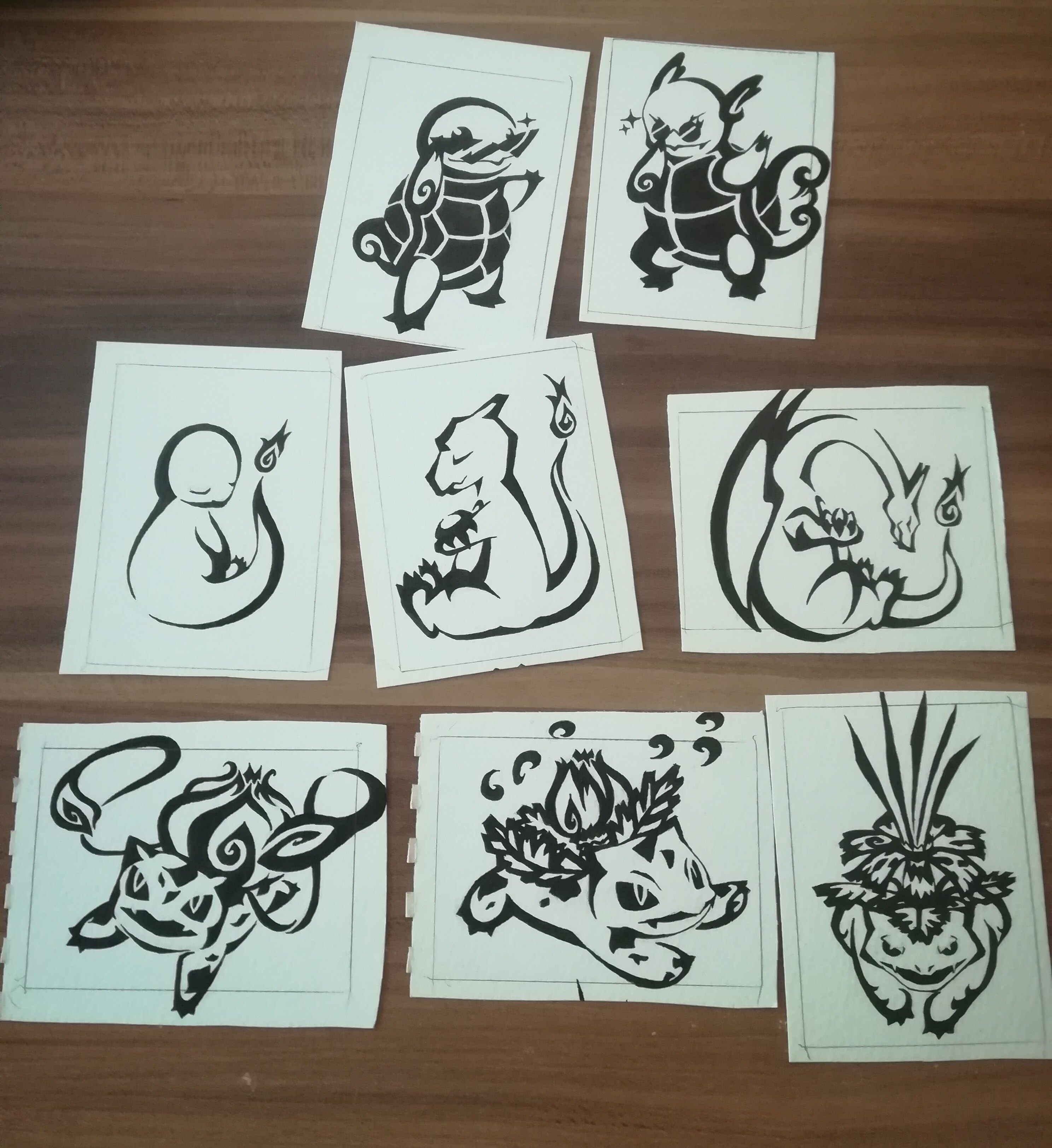 Ich habe heute einen alten Block ausgemistet und dabei diese Pokémon im Tribalstil gefunden, die ich vor ner Weile mal gemalt habe. Und weil ich seit Jahren fast nichts außer Kakao-Karten mache, haben sie unbewusst ziemlich gute Kakaogröße, sodass ich Karten aus ihnen machen könnte. Dafür sind sie allerdings noch viel zu leer und ich überlege, wie ich sie noch aufwerten könnte und ob ich überhaupt richtige Karten aus ihnen machen soll. Sie sind halt verhältnismäßig schlicht. Was meint ihr? Vllt leichte Aquarellsplashes?