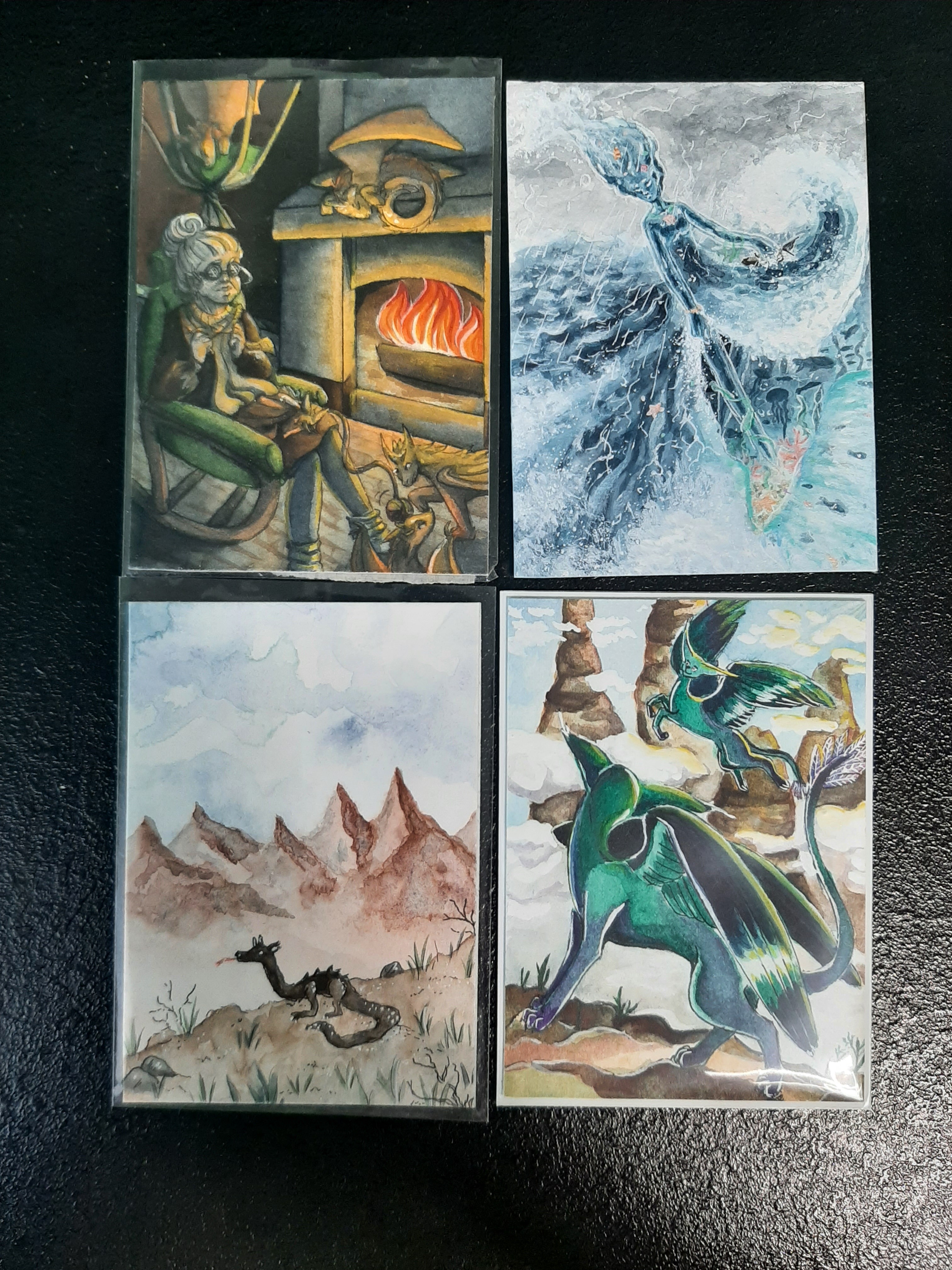 Da ich eh die letzte bin, spoiler ich noch ein bisschen rum: Es sind so viele tolle Karten drin, ich glaube, ich hatte noch nie bei einem WaPa solche Probleme bei der Auswahl xD Special Mentions noch für Arianas Feuermagierin (das Leuchten und das Feuer sind sooo cool <3), antaresnox’ Waser-Karte (der Übergang von den Haaren zum Wasser, so eine coole Idee und so gut umgesetzt!), den Erdgolem von Cait (der sieht so sympathisch aus <3) und die Luftfee von Rena (ich liebe die Idee mit den Windrädern! und ihr Design ist wahnsinnig toll)