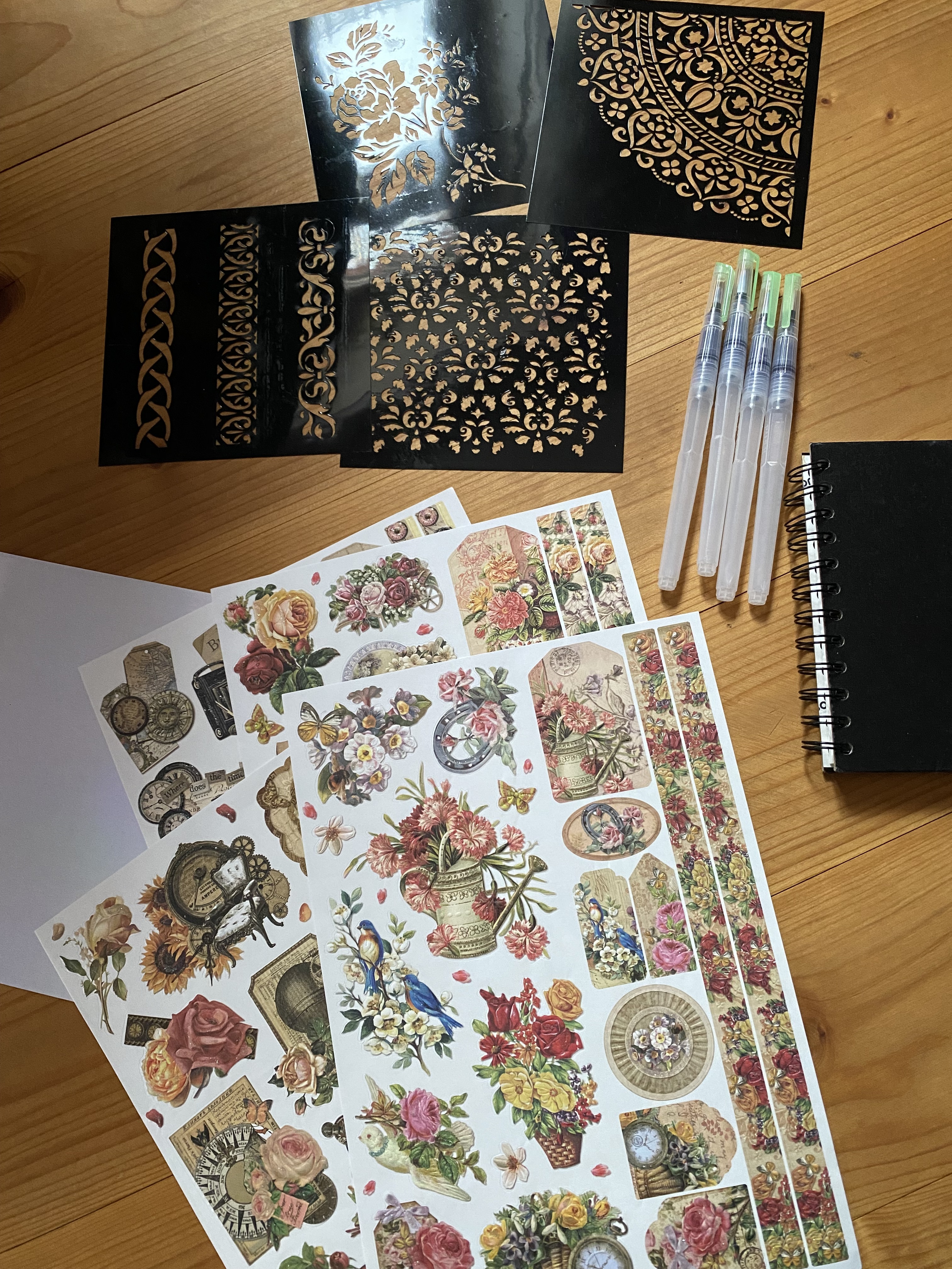 - Sonstiges: Fixaktive (yay endlich habe ich eins!), Kartenhüllen, Strasssticker, Fimoteile, Kleine gelbe Blumen, Holo Glitzer, Stift mit Regenbogenmiene.