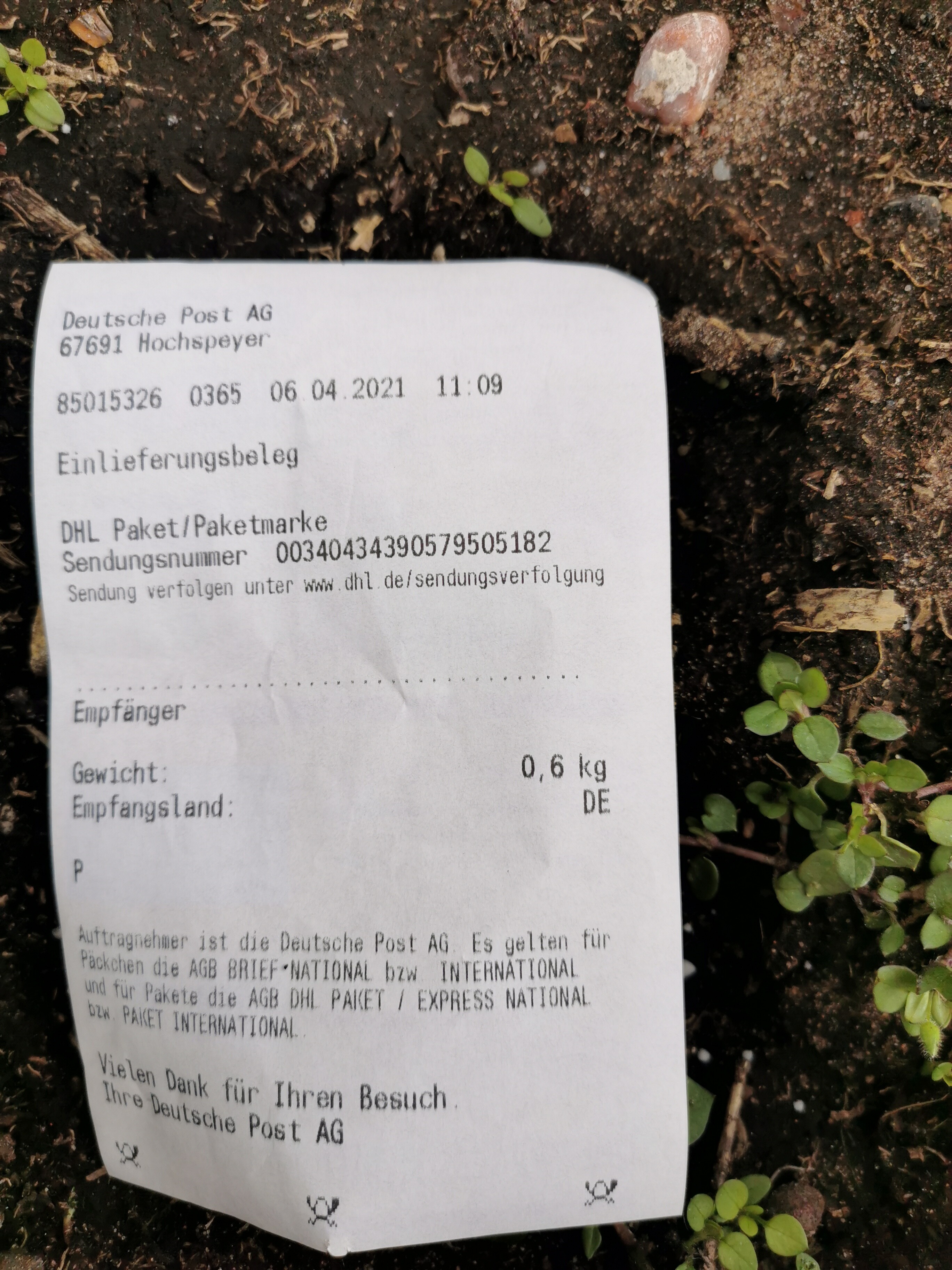Das Paket werde ich gleich am Montag zur Post bringen, die Sendungsnummer folgt
