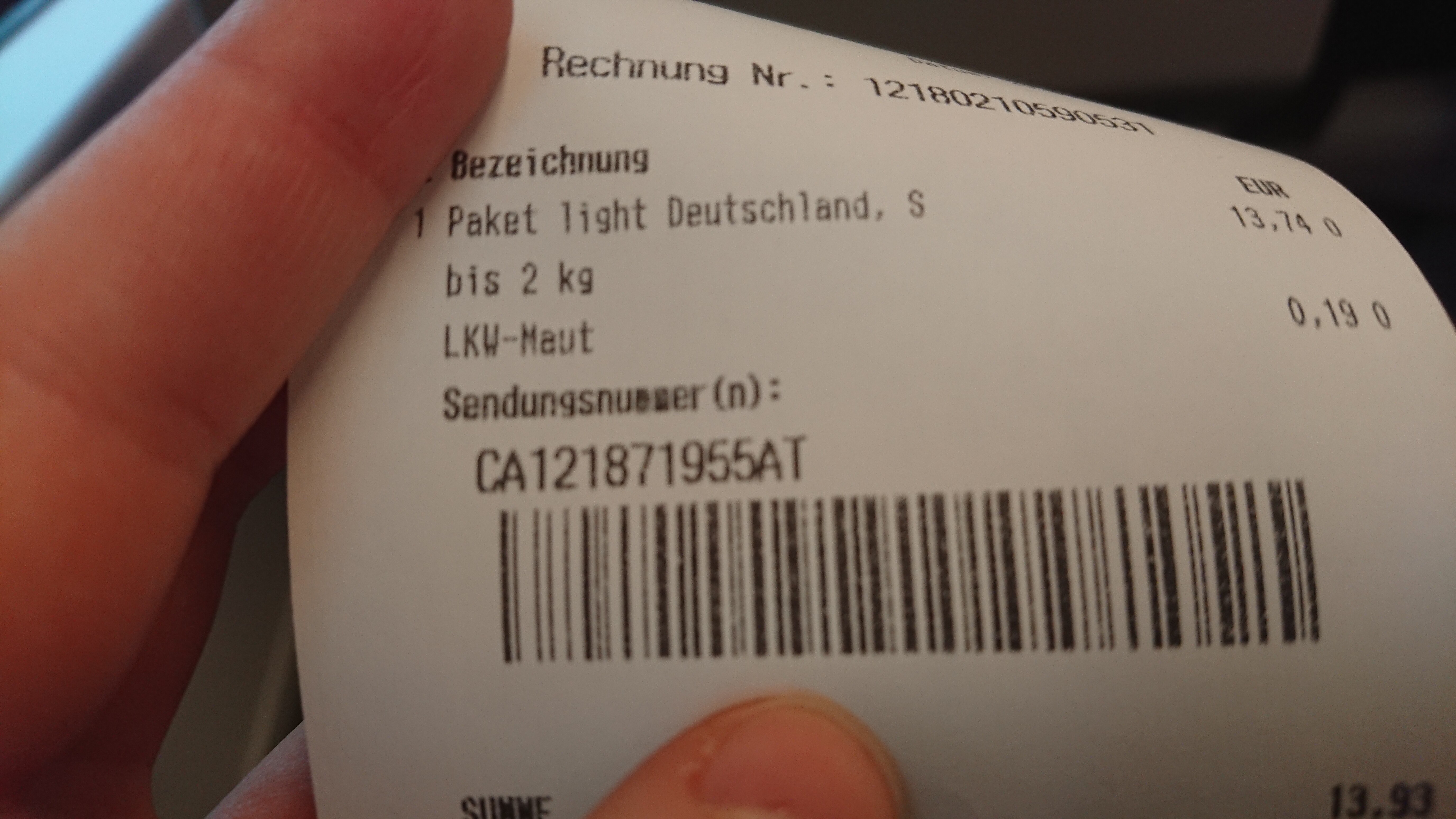 Das Paket hat sich wieder auf den Weg gemacht, mit der Sendungsnummer