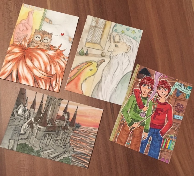 Die Karte ist mir zuerst aufgefallen, da sie so schön friedlich und sanft aussah und Dumbledore und Fawkes auch unter meinen Lieblingen sind :D