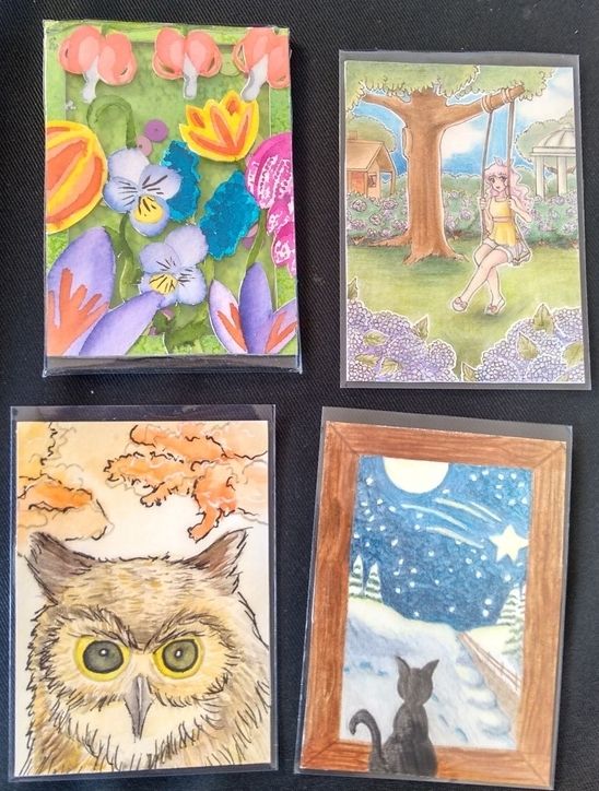 Ich hätte am liebsten so viele Karten gemalt, dass ich den kompletten Ordner hätte austauschen können! Allesamt sind wirklich wunderschön geworden! Aber leider geht das nicht, also habe ich kurz und schmerzlos meine vier Karten eingetauscht…