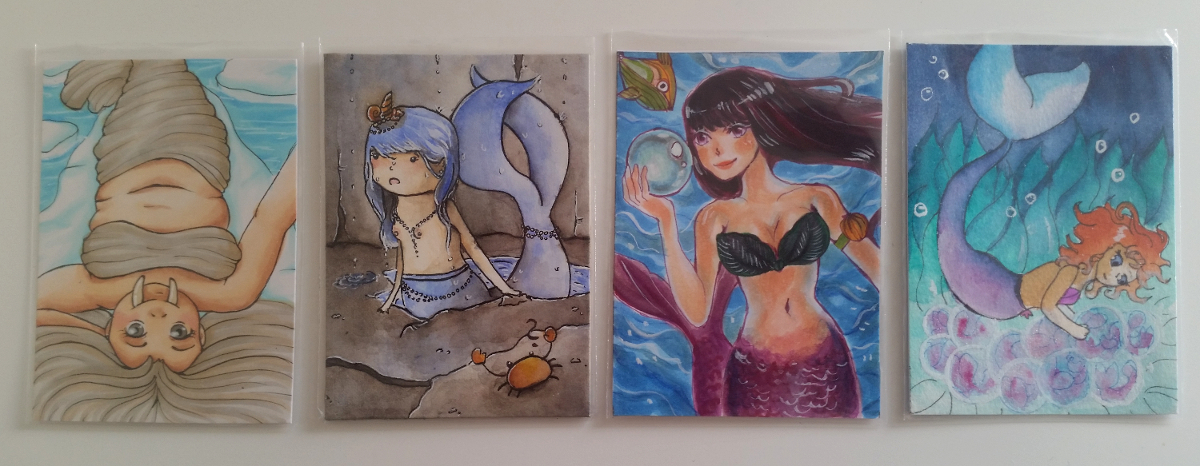 Ich hatte noch mindestens zwei andere Karten in der engeren Auswahl, denen ich jetzt nachweinen darf X’D Aber so ist das halt. Mit ein Grund für meine Entscheidung für DIESE vier Karten, war auch, dass sie farblich als Set ganz gut zusammenpassen und in meinem Ordner nebeneinander einfach hübsch aussehen :) <3 Danke also nochmal an alle Starter und Teilnehmer, ich bin sehr zufrieden und jetzt einfach nur noch gespannt, wer eine von meinen Karten wählt und vor allem, welche davon zuerst. hibbel