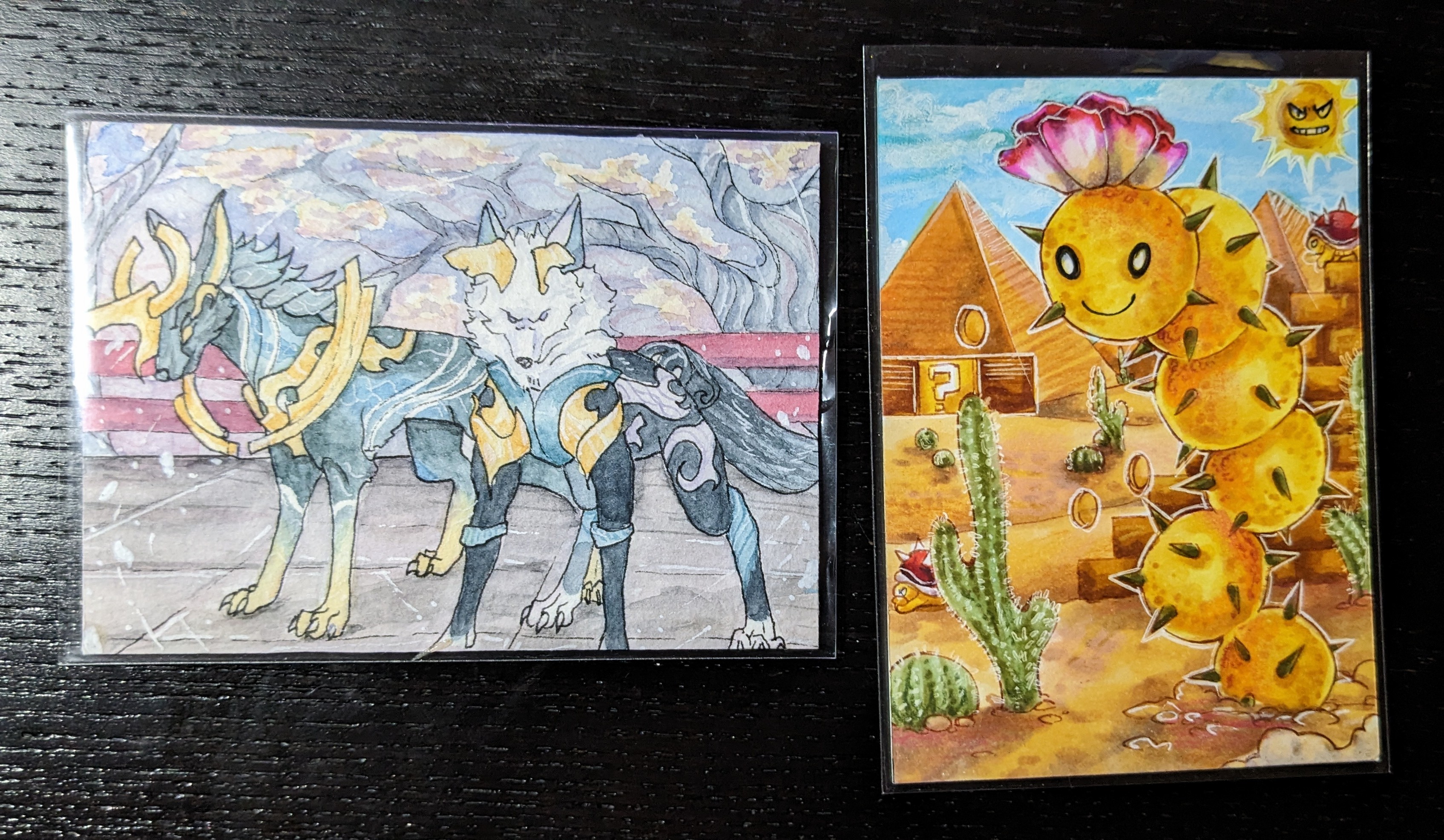 Ich bin ehrlich: Ich habe nach “golden beasts” gesucht und leider nichts dazu gefunden, aus welchem Game die beiden sind xD Ich dachte erst Genshin, aber hab bis auf einen “golden wolflord” nichts dergleichen gefunden, daher verrate mir bitte, aus welchem Game die beiden sind. Ich habe mich für die Karte entschieden, weil ich das Design unglaublich genial fand und ich wolf- / hundeartige Wesen einfach liebe und du sie einfach richtig toll getroffen hast <33 Auch die Bäume im Hintergrund sind richtig toll geworden und es hat einen tollen Tiefeneffekt! Ich freue mich schon sehr, sie näher kennenzulernen