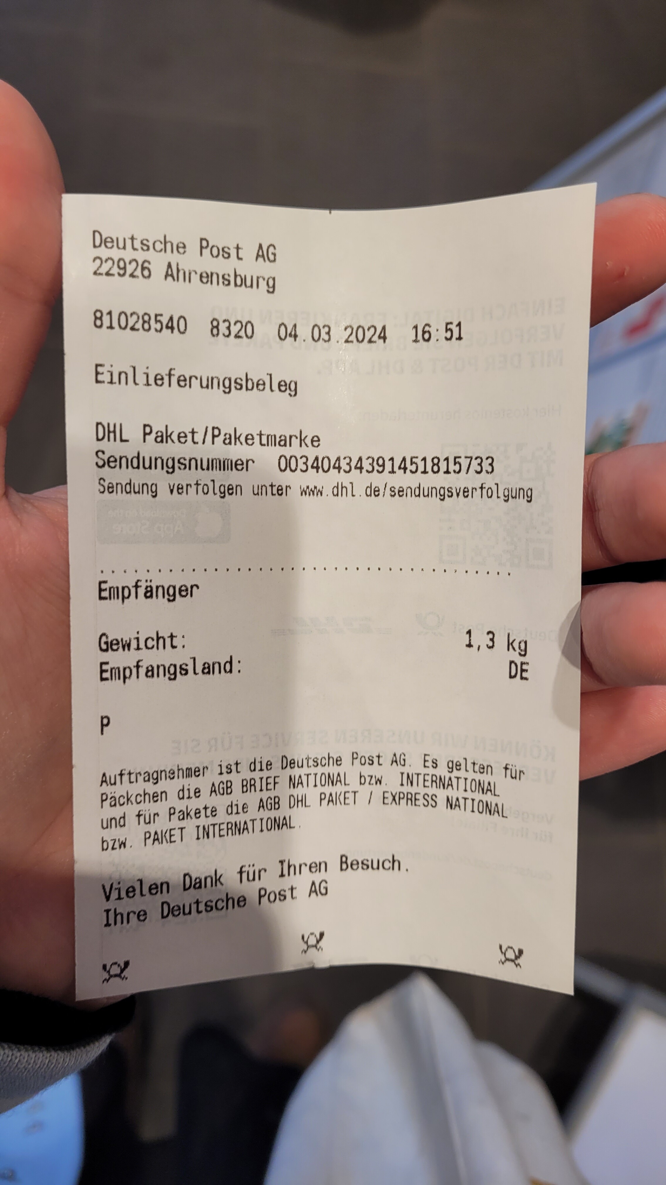 Ich versuche das Paket morgen oder übermorgen zur Post zu bringen und melde mich dann wieder hier.