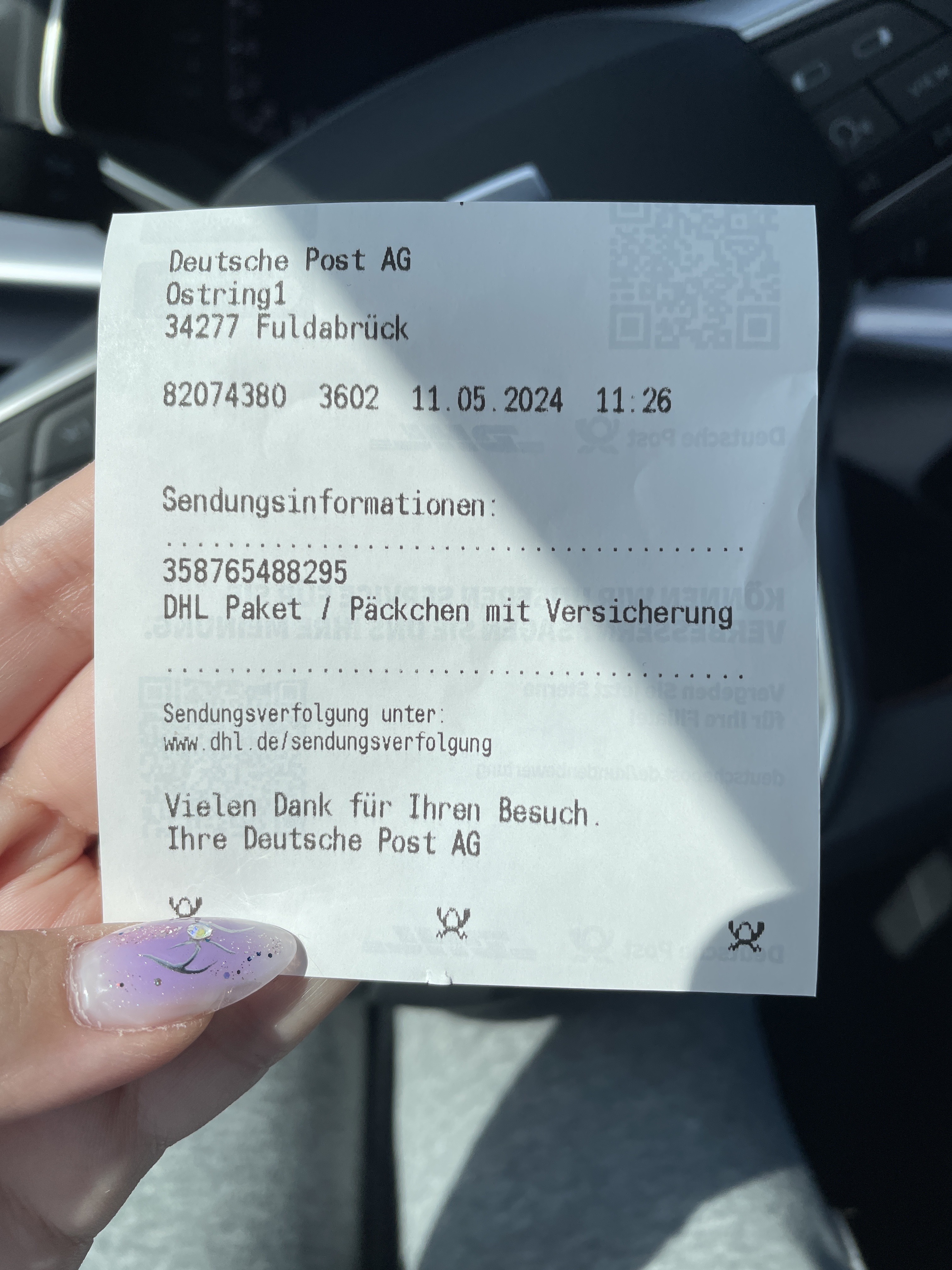 Das Paket ist wieder unterwegs. Sendungsnr. 00340434391502708175
