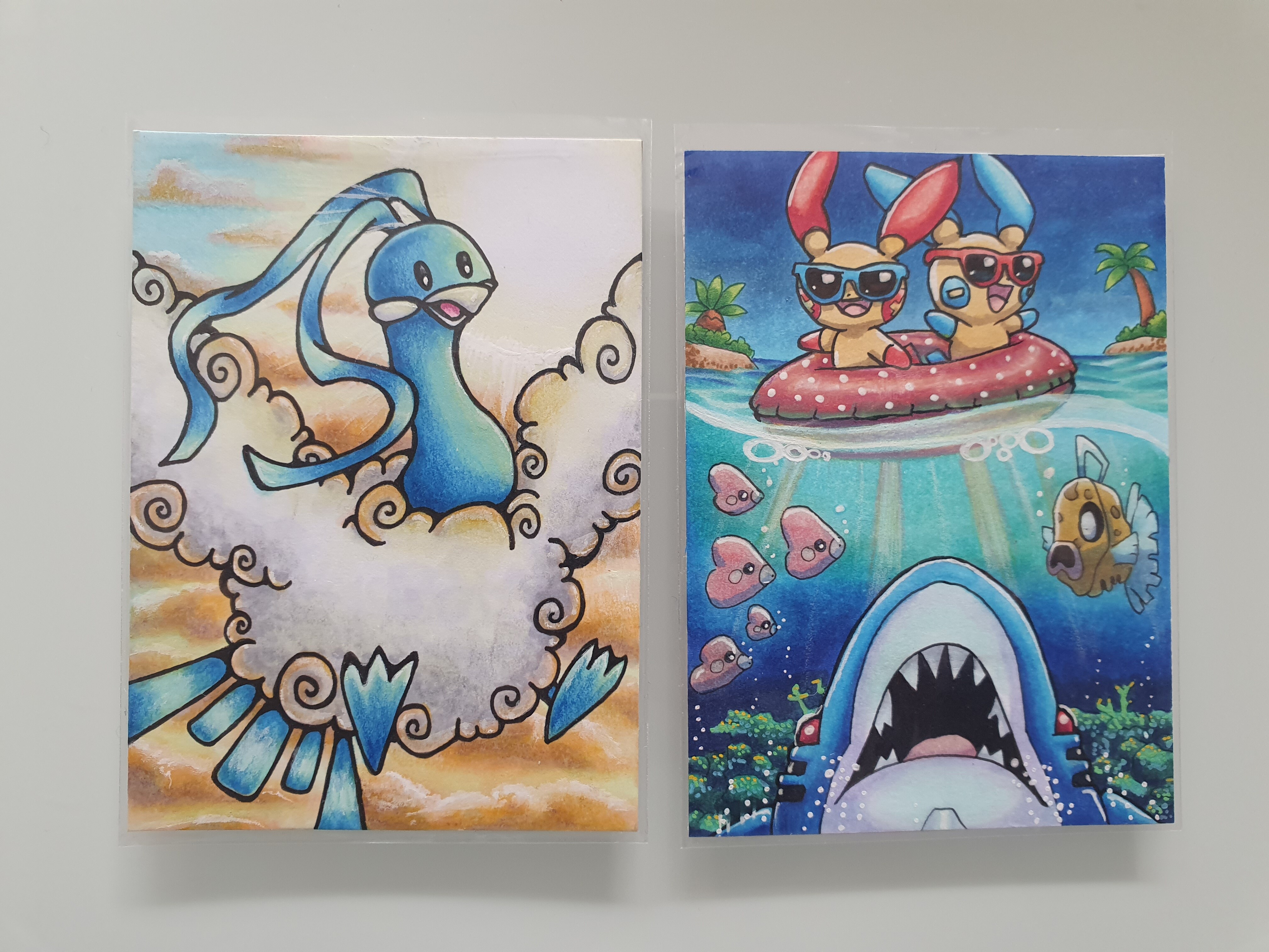 Die Karte ist mir als erstes ins Auge gesprungen. Ich finde der Querschnitt von oberhalb und unterhalb des Wassers richtig spannend und auch perfekt, um die verschiedenen Pokemon zu zeigen. Die vielen kleinen Details sind so schön eingearbeitet. Und gerade Plusl und Minun mit ihren andera farbigen Brillen sind so ein netter Hingucker <3