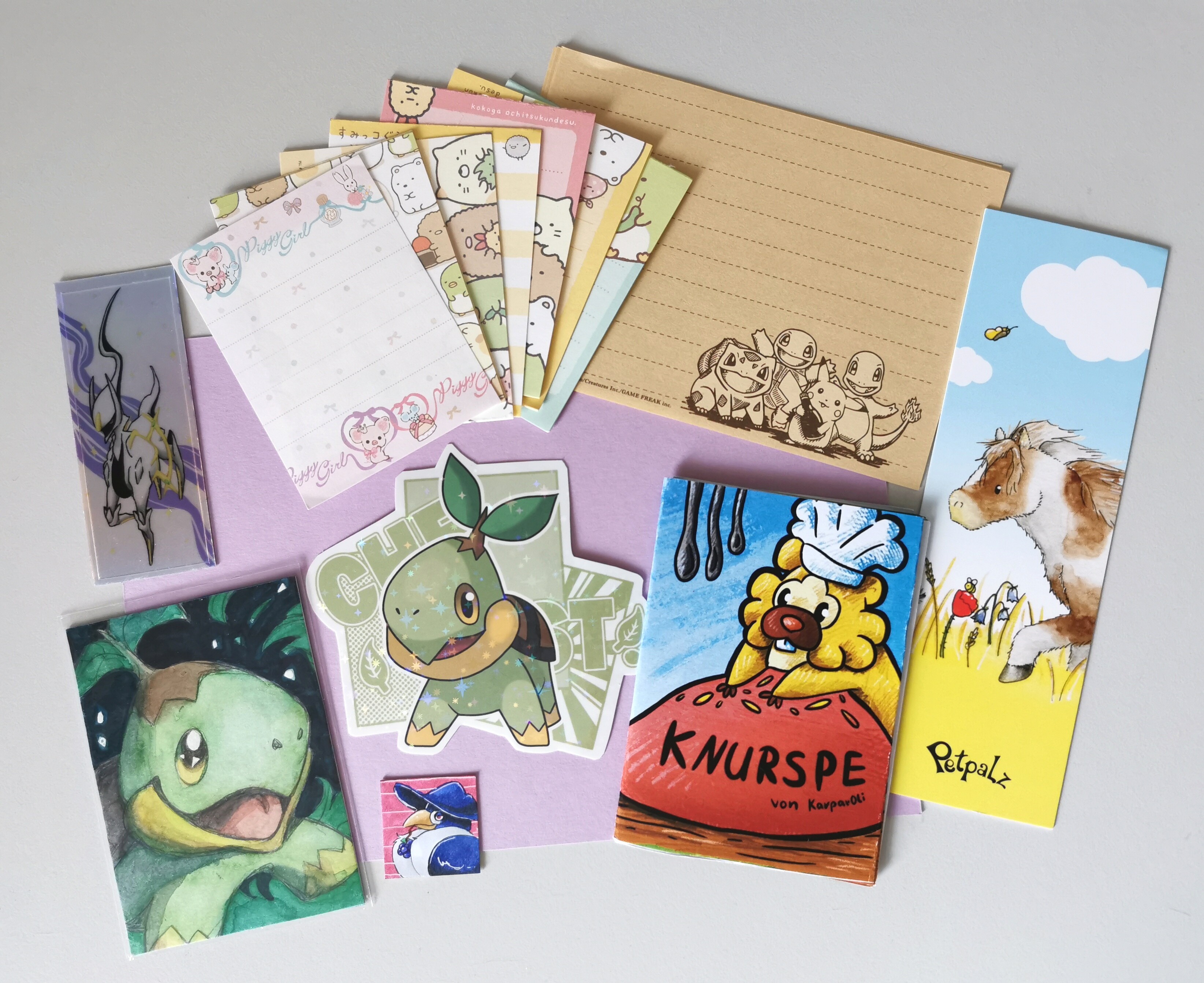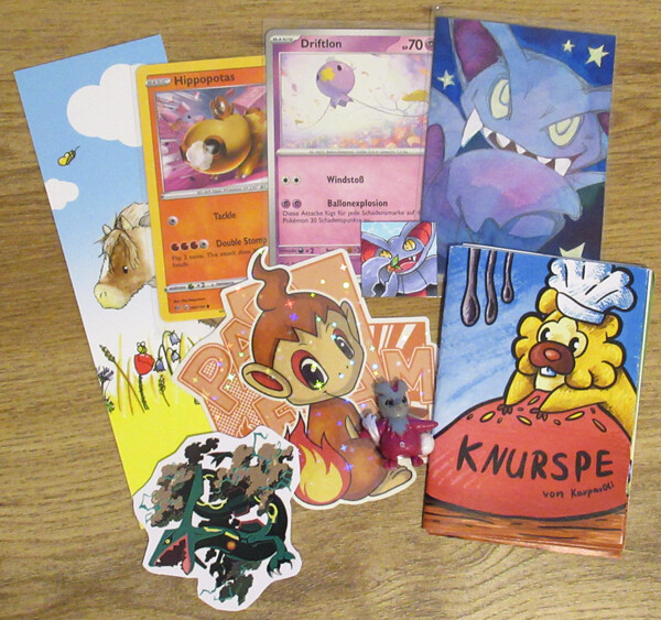 Vielen lieben Dank unter anderem an @Risto für das super süßes Schalellos <3 und @Torika für das hübsche Lucario-Inchie :3 Und auch an @Karpav0li für das coole Zine - das Rezept wird auf jeden Fall mal getestet!