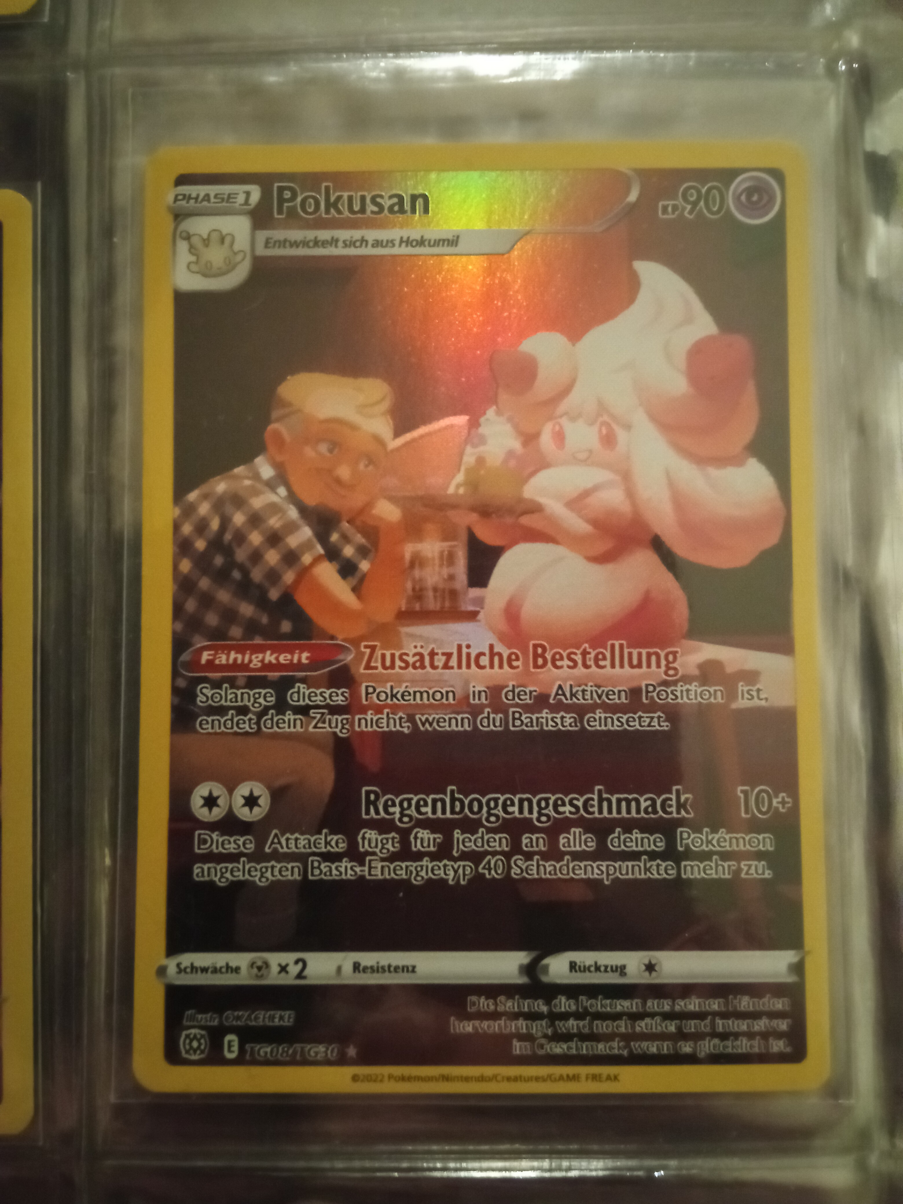 Hehe, ich hatte kürzlich zwei ungeöffnete Boosterpackets (aus dem Jahr 2021/2022) gefunden, die ich damals ursprünglich den beiden Nachbarkindern schenken wollte (es aber nicht getan habe). Die Booster hat meine Tochter dann bekommen. Dort war u.a. eine Hologrammkarte dabei und ich meinte zu meiner Tochter nur: “Mooooooment, lass mich kurz bei eBay schauen, wieviel diese Karte wert ist” ;) … ok, sie durfte sie danach “sammeln”.