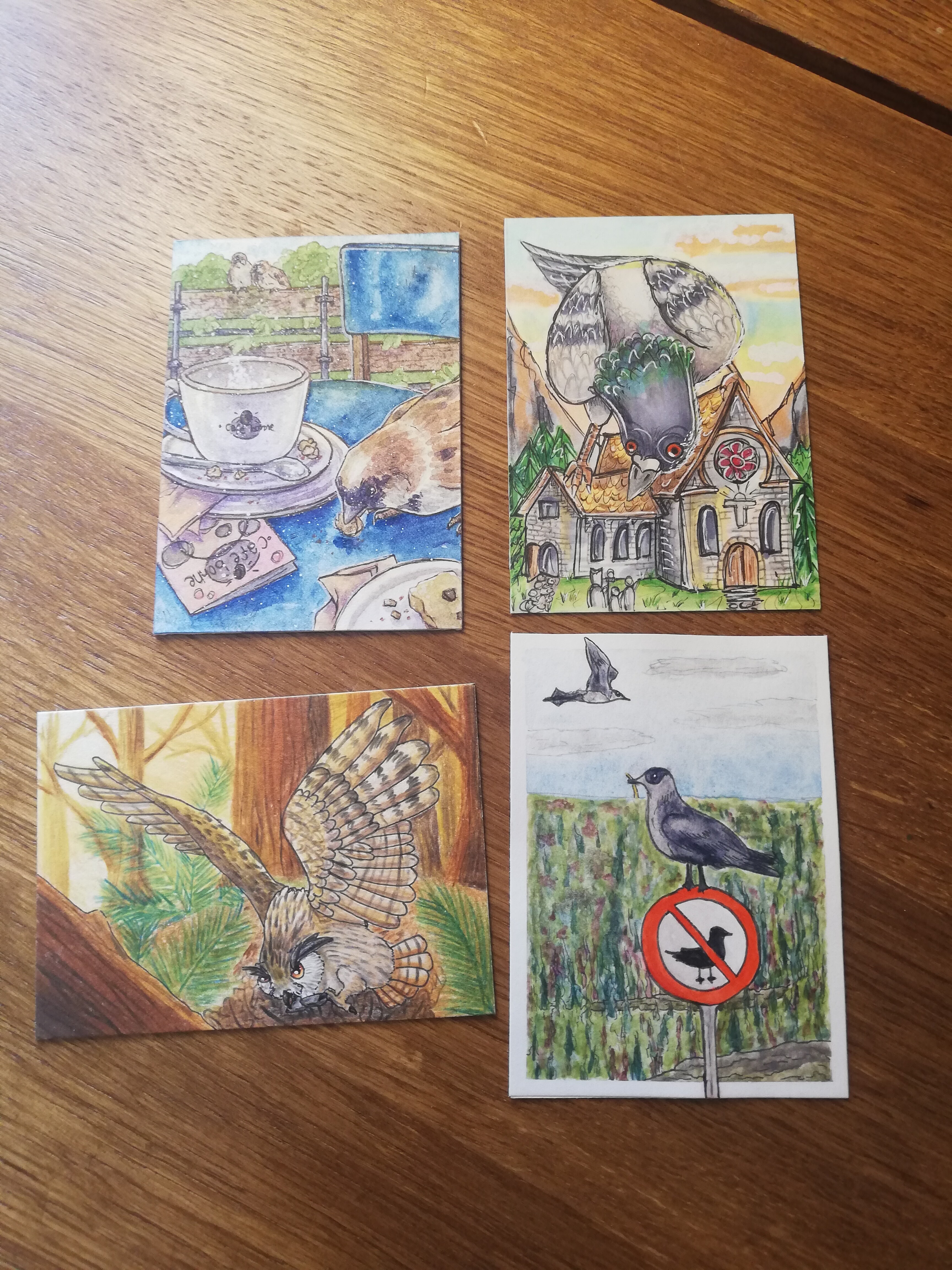 Ich find die Karte irre lustig xDD So eine riesen Taube, die da aufm Dach sitzt und so n bisschen gruselig guckt spricht total meinen Humor an xD Eventuell auch angestachelt davon, das es ein Spiel gibt, wo man Tauben datet xD Ich habs nicht gespielt, nur davon gehört/darüber gelesen und es wirkt sehr… hm, speziell und irre schräg und irgendwie muss ich auch daran denken und finde das in seiner Gesamtheit einfach sehr lustig xDD