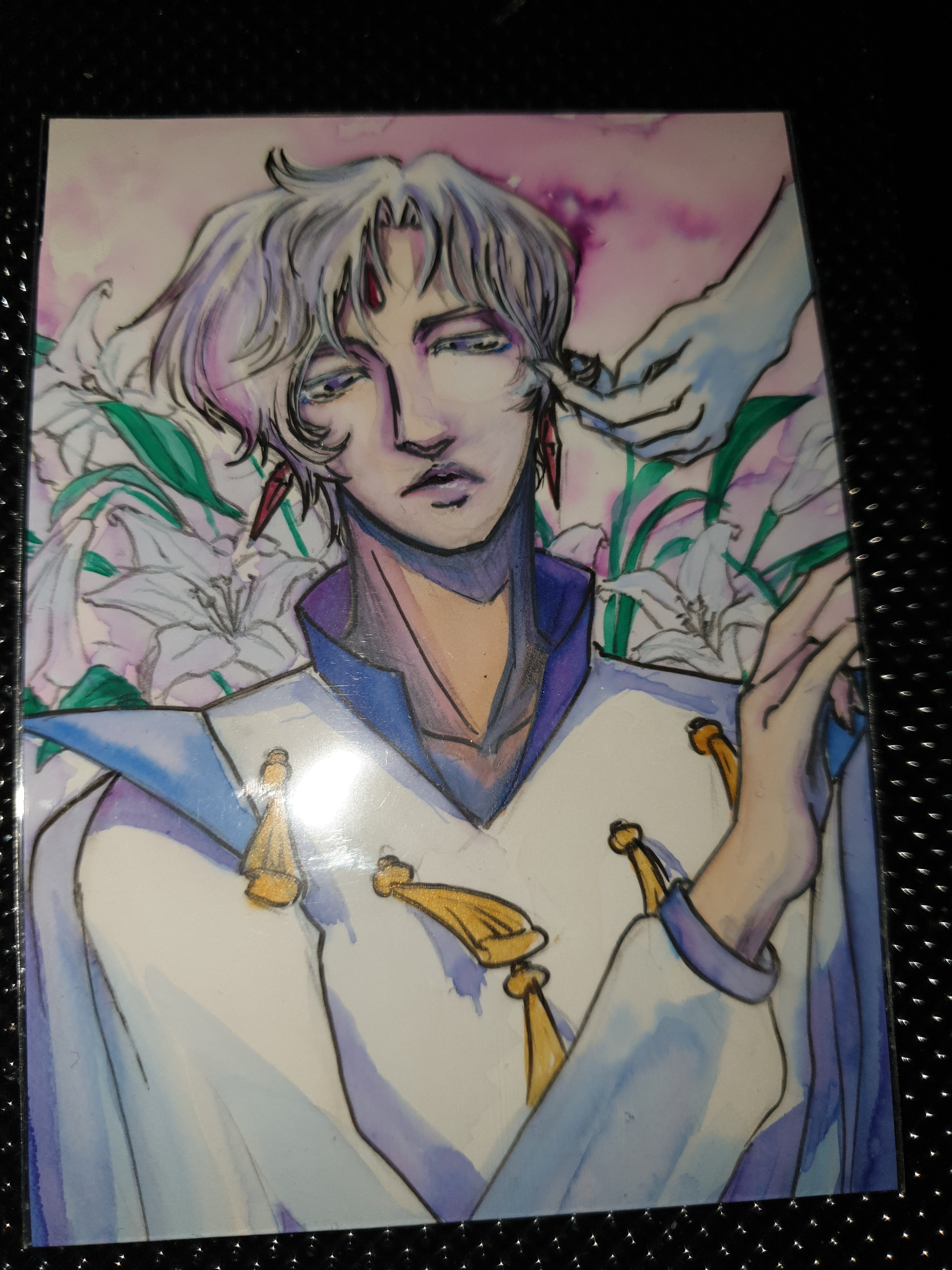 Ich liebe Serenity! Und ich mag es, dass sie hier im alten Silvermillenium zu friedlichen Zeiten zu sehen ist. Ich finde deinen Zeichenstil mega interessant, mit den harten Outlines und den kräftigen Farben! Die Rosen sind superschön und die Erde ist auch echt gut gelungen! Das Kleid ist übrigens mit einem Goldstift verziert worden <3 Super schönes Kärtchen!
