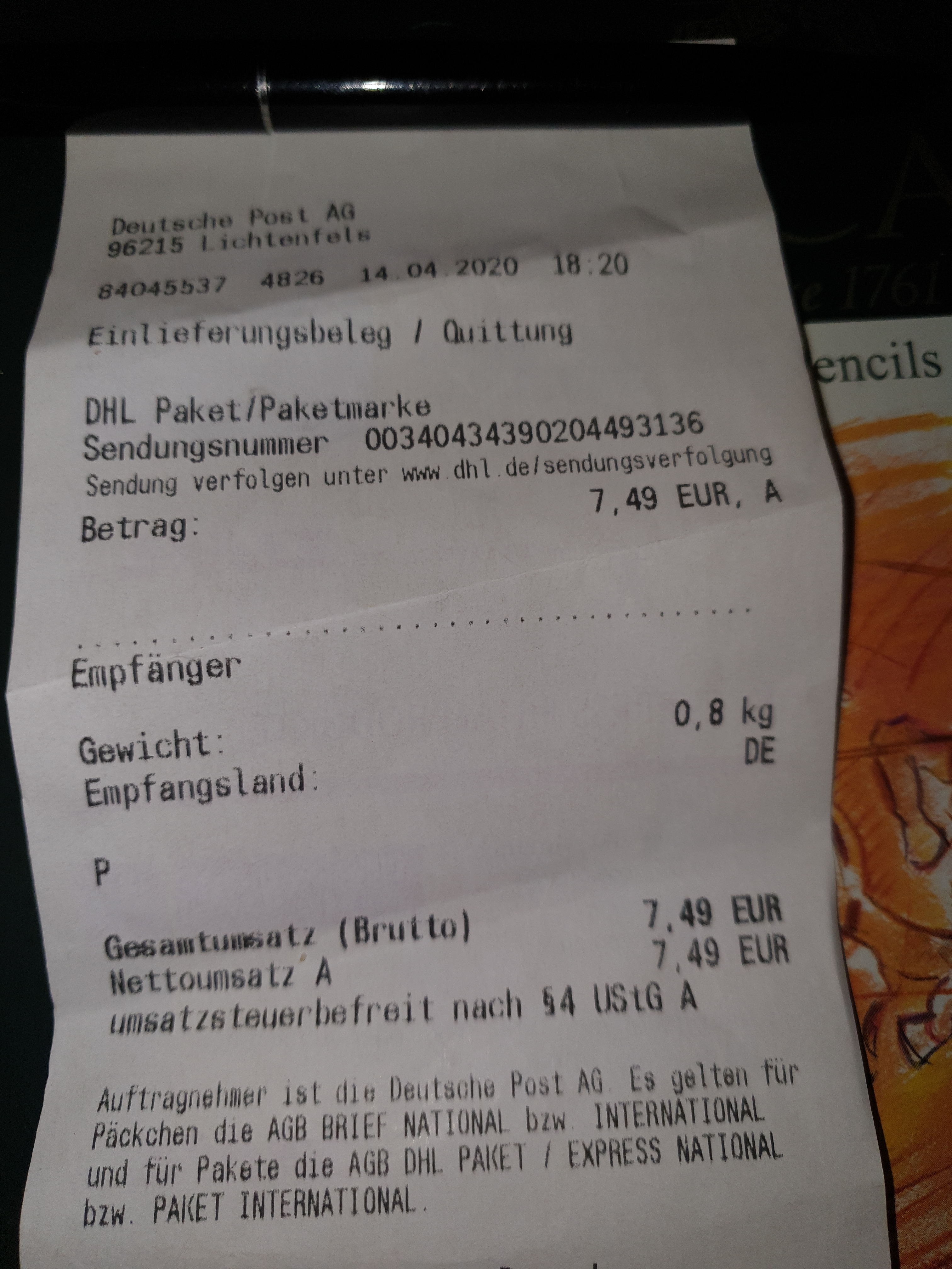 Edit (08.04.2020): Das Paket wurde erfolgreich zugestellt.